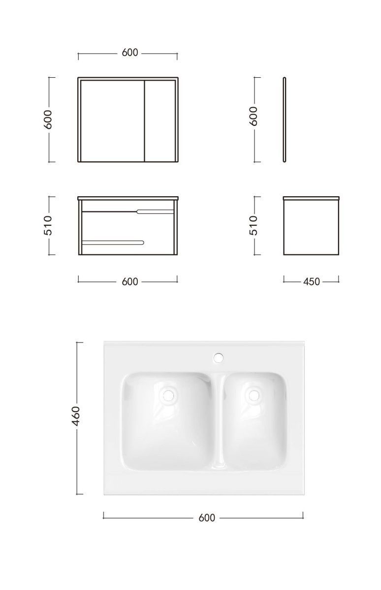В комплекте: двойная раковина, 2 донных клапана, 2 сифона с фильтром-затвором, У-образный сливной шланг, электрические вилки для включения подсветки зеркального шкафа и подсветки тумбы. Смеситель приобретается отдельно.