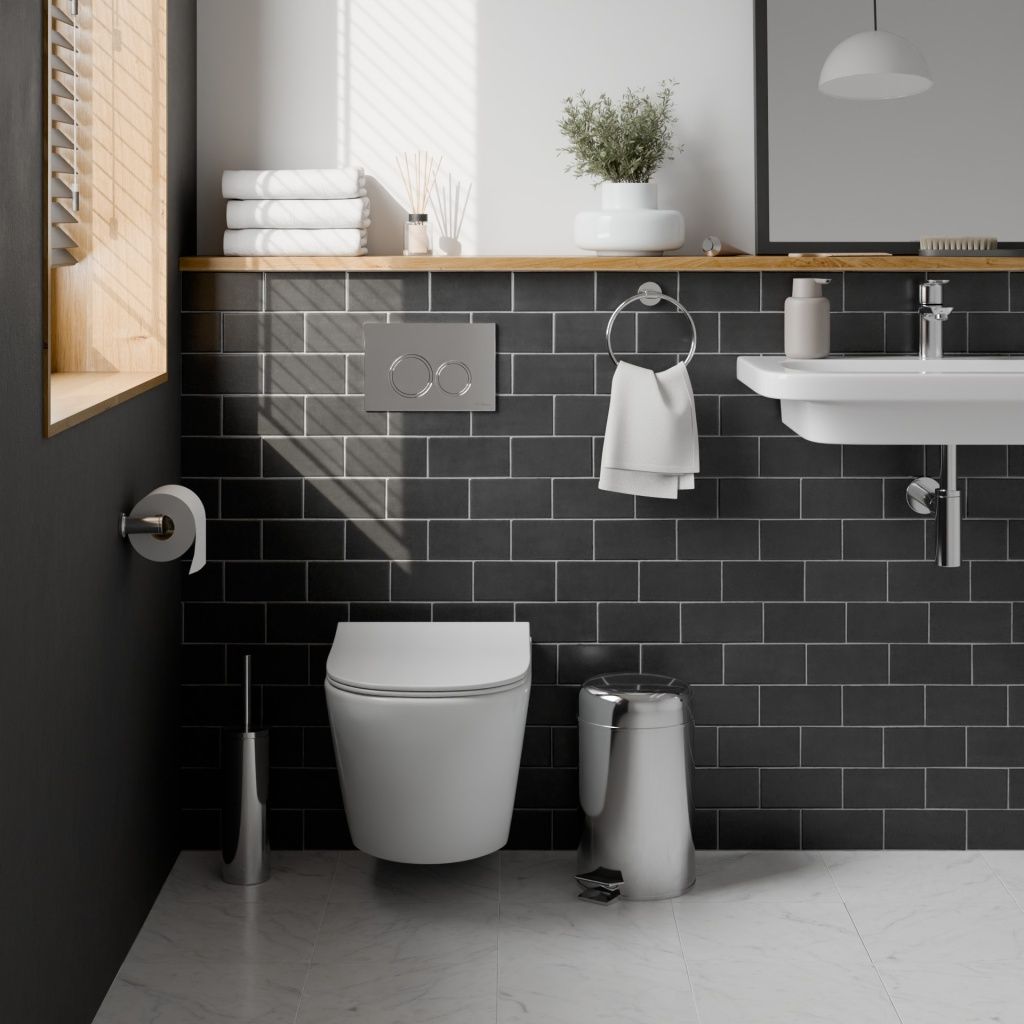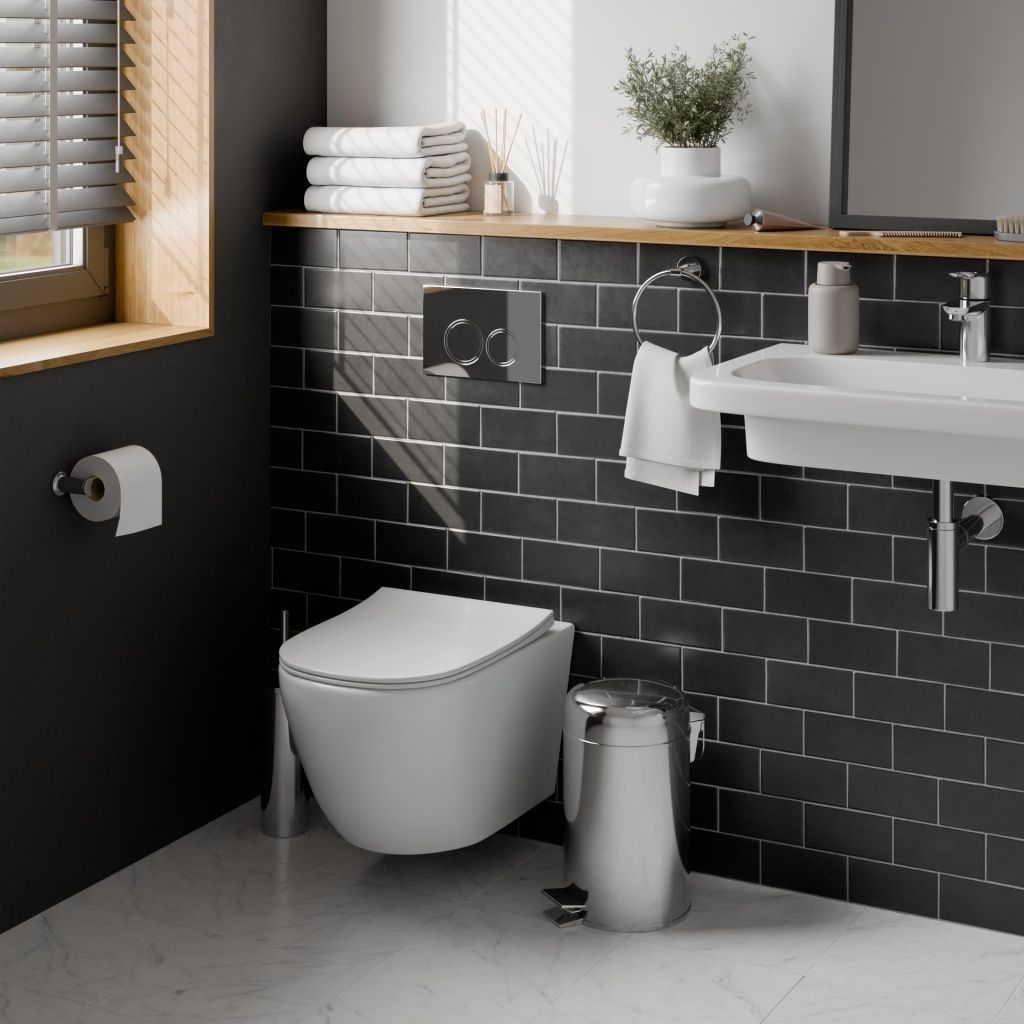 • имеет ширину 38 см и возможность установки в угол 90 градусов, совместима со всеми типами подвесных унитазов, межосевое расстояние которых составляет 180 или 230 мм.