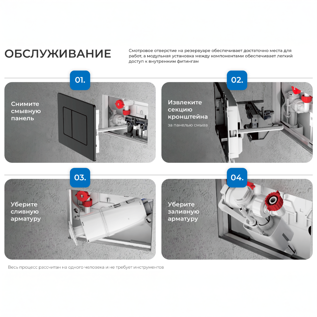 • рама инсталляции выполнена из высокопрочной стали с антикоррозийным покрытием, что обеспечивает надежность и долговечность
