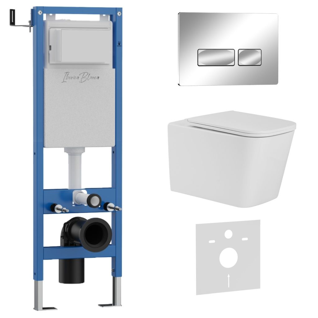 Создайте идеальную ванную комнату с комплектом сантехники, который включает подвесной унитаз TOLEDO ALTO (арт. IB.TLA.231.1B1) и клавишу смыва  ESTI-R цвета хром глянцевый, ABS пластик (арт. IB.B021.003.002 ). Подвесной унитаз с безободковой системой смыва выполнен из белого фарфора, и имеет такие особенности как: