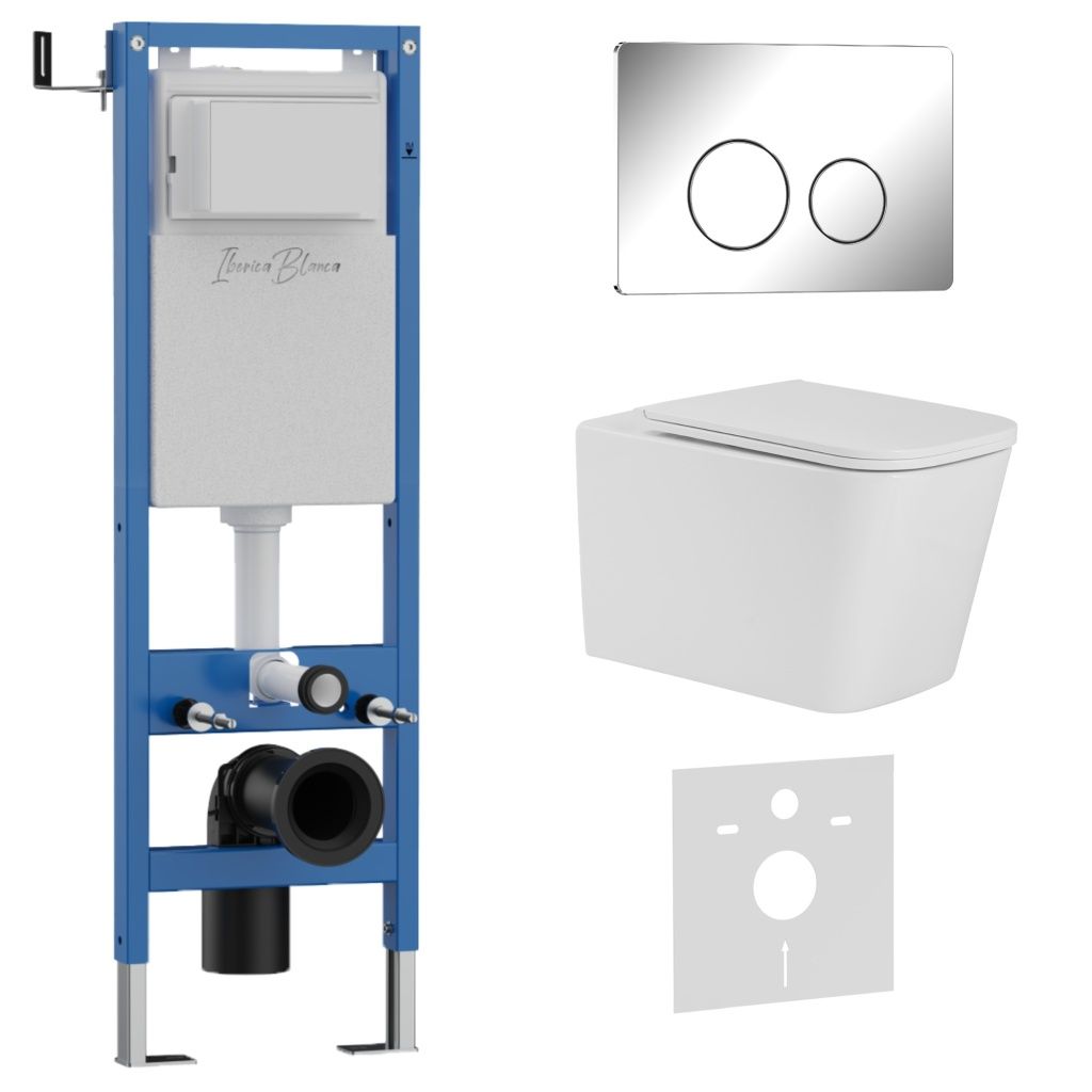 Создайте идеальную ванную комнату с комплектом сантехники, который включает подвесной унитаз TOLEDO ALTO (арт. IB.TLA.234.1B1) и клавишу смыва  INOX-O цвета хром глянцевый, нержавеющая сталь (арт. IB.B081.003.001 ). Подвесной унитаз с системой смыва TORNADO  выполнен из белого фарфора, и имеет такие особенности как: