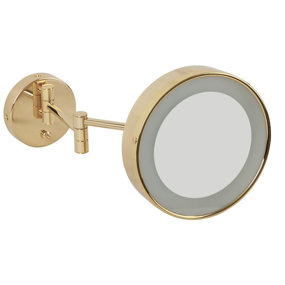 Оптическое зеркало с галогеновой подсветкой на шарнирах  бренда Migliore с двумя зеркальными полотнами, одно из которых имеет трехкратное увеличение для удобства проведения макияжа и других процедур. Изделие выполнено из высококачественной латуни и имеет гальваническое покрытие золотом 24 карата.