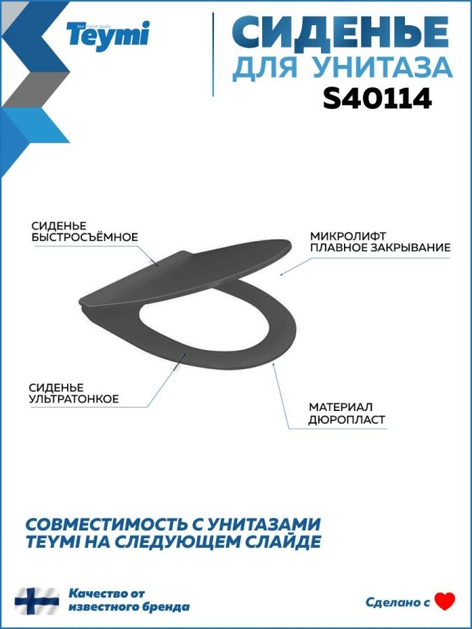 -- Особенности: супертонкое быстросъёмное сиденье с крышкой, плавное закрывание;