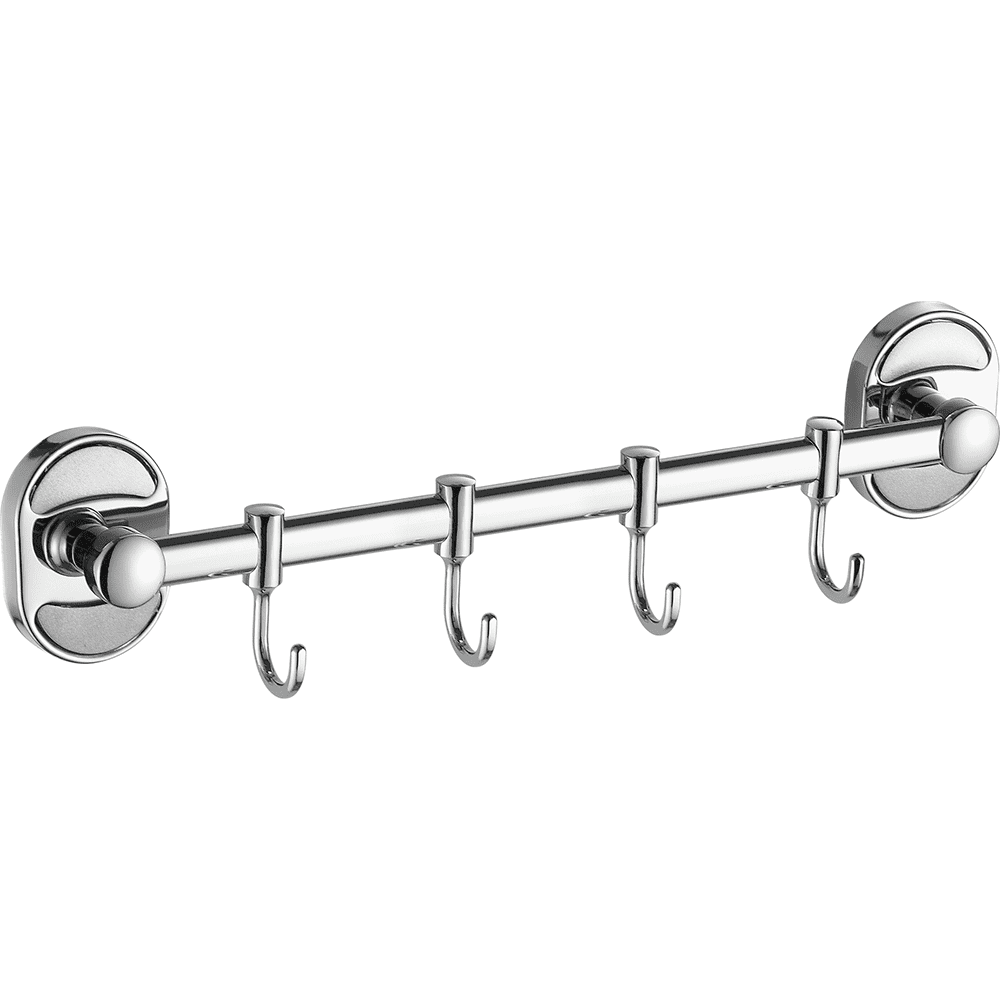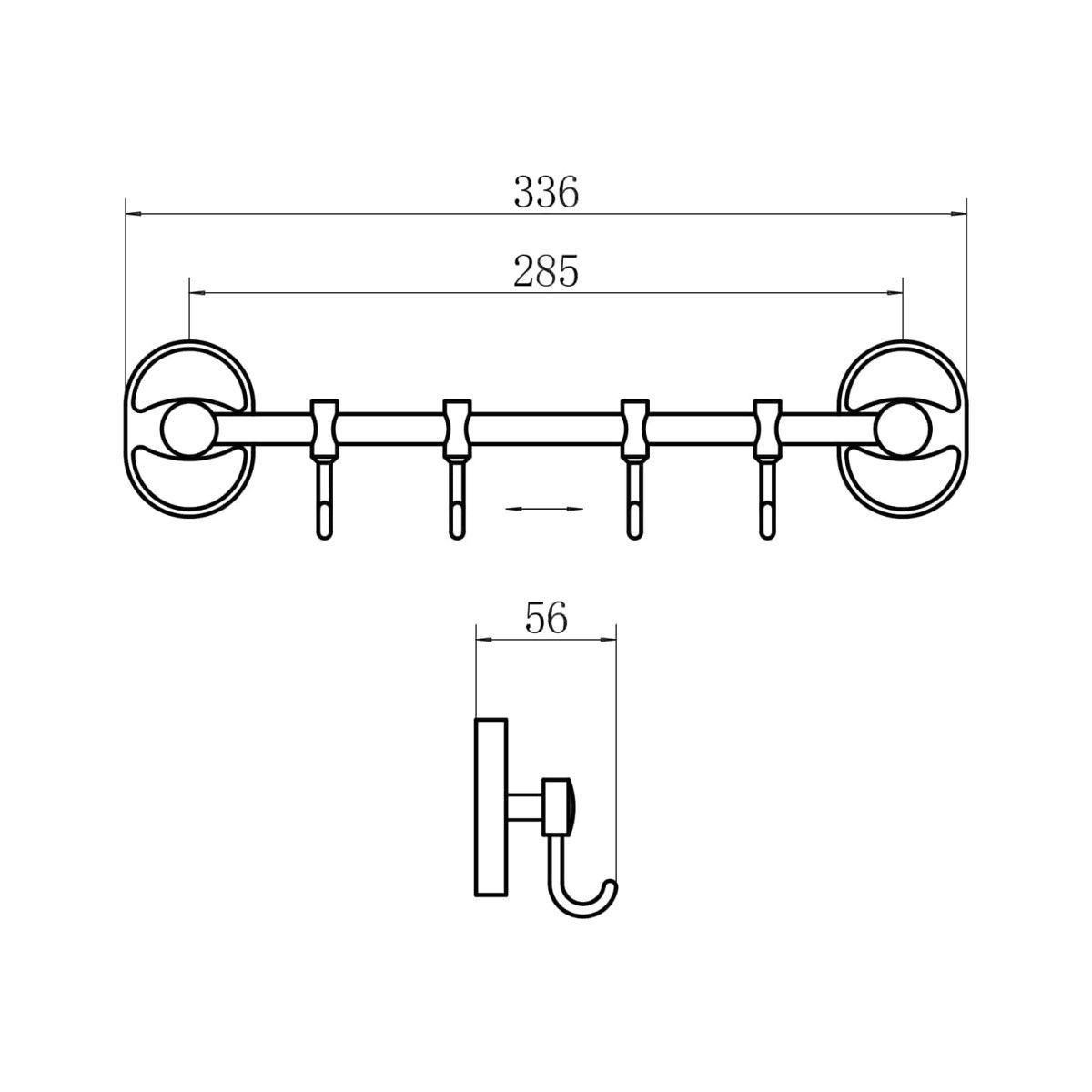 A1915-4 вешалка из 4 подвижных крючков на горизонтальной планке настенного монтажа, L=336 мм хром сталь SUS201 установочный комплект + индивидуальная упаковка