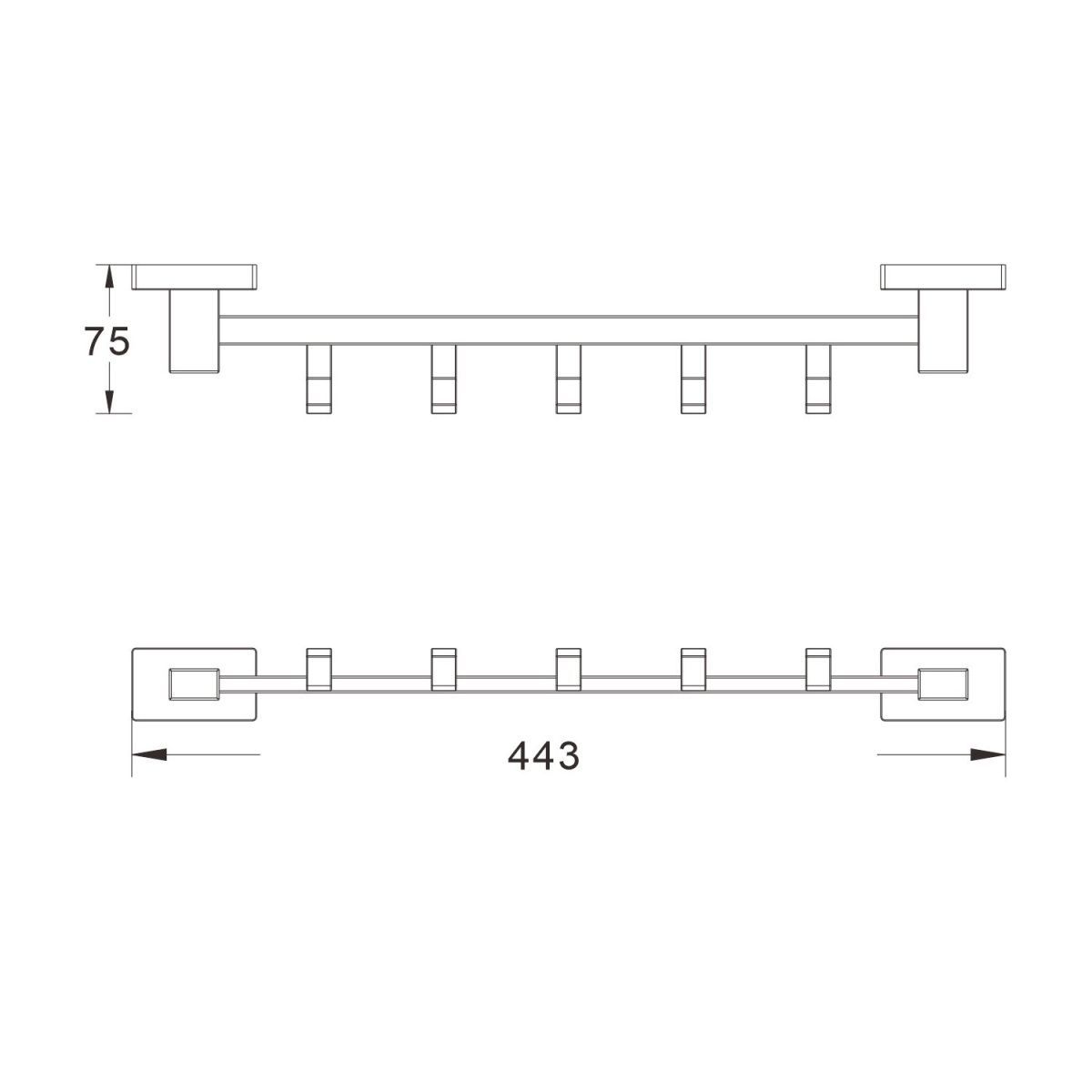 Планка с крючками Shevanik SG5651, хром. Количество крючков: 5. Метод крепления: шурупы.