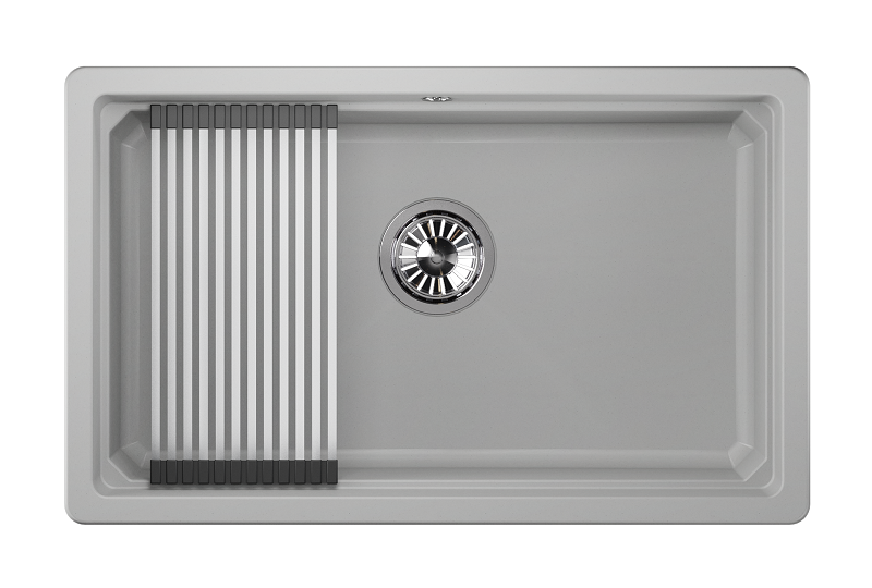 Мойка российского производителя Granula. Односекционная кухонная мойка вытянутой прямоугольной формы 730х450 мм для установки под столешницу в шкаф 800 мм. Такая форма поможет легко справиться с большим объемом посуды, а установка под столешницу позволит идеально вписаться в любой современный интерьер. Представляет собой инновационный комплекс с удобной площадкой внутри чаши для установки ролл-мата или разделочной доски. Выполнена из кварцевого композитного материала высокой плотности и гигроскопичности, что обеспечивает не менее 20 лет надежной эксплуатации. Ролл-мат и дозатор из нержавеющей стали идут в комплекте.