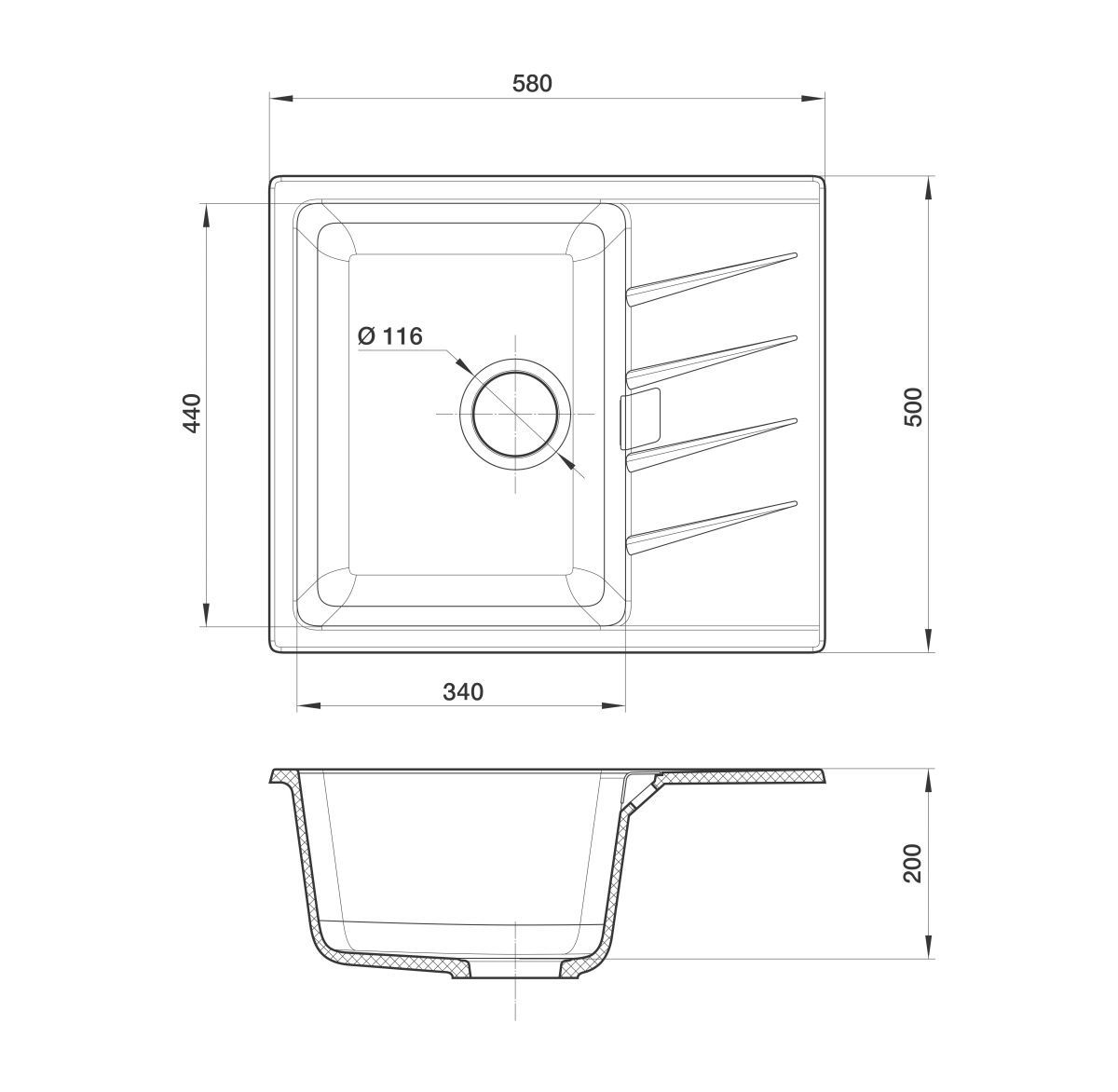 —Кухонная мойка Rivelato RAUM RM-58 beige scuro 60х50 цвет бежевый
