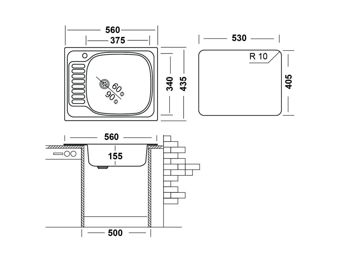 Коллекция моек КЛАССИКА создана для ценителей сантехнического оборудования традиционной прямоугольной формы. Отличительной особенностью коллекции моек является минималистичный дизайн и чаши прямоугольной формы. Компактная кухонная мойка CLM560.435 гармонично сочетает в себе практичность и современную эстетику. Такая мойка будет актуальна практически в любом интерьере кухонного гарнитура. Модель CLM560.435 российского производства сделана из высококачественной нержавеющей стали толщиной 0,5 мм, состоит из одной чаши и небольшого крыла. Чаша располагается относительно крыла слева. Производится с видом поверхности Матовый металл. Изделие отличается высоким качеством и ценовой доступностью. Мойка врезного способа монтажа имеет размеры 560х435 мм и предназначена для установки в тумбу от 45 см. Такая раковина идеально подойдет для небольшой кухни. Вместительность чаши позволяет свободно и с комфортом использовать мойку даже при мытье крупногабаритной посуды. Оснащение дополнительными аксессуарами, например, моечной корзиной, увеличат функциональность мойки в процессе эксплуатации. Чаша оборудована малым выпускным отверстием 1½ʺ. Перелив не предусмотрен. На корпусе изделия, справа от чаши, предусмотрена площадка для установки смесителя. Небольшое крыло послужит дополнительной рабочей поверхностью. Его используют для хранения грязной посуды, либо сушки уже вымытой посуды, чему способствует рельефный рисунок, в том числе, крыло можно использовать для разморозки продуктов или хранения фруктов/овощей перед приготовлением. Накладки на дне мойки из специального противошумного состава поглощают шум от льющейся воды. Эстетичный внешний вид и защита от протекания за счет специальной обработки краев и плотного прилегания к столешнице, благодаря специальной уплотнительной ленте. Уход за изделием будет легким и быстрым, благодаря уникальным свойствам нержавеющей стали: отсутствие пор и микротрещин исключает скопление грязи и бактерий на поверхности. Мойки из нержавеющей стали являются экологичными, абсолютно безопасными для здоровья, не впитывают запахи, имеют стойкость к коррозии и высоким температурам. Такая конструктивная особенность как скругленные углы чаши, также облегчат уход за мойкой и существенно увеличивают полезный объем чаши.