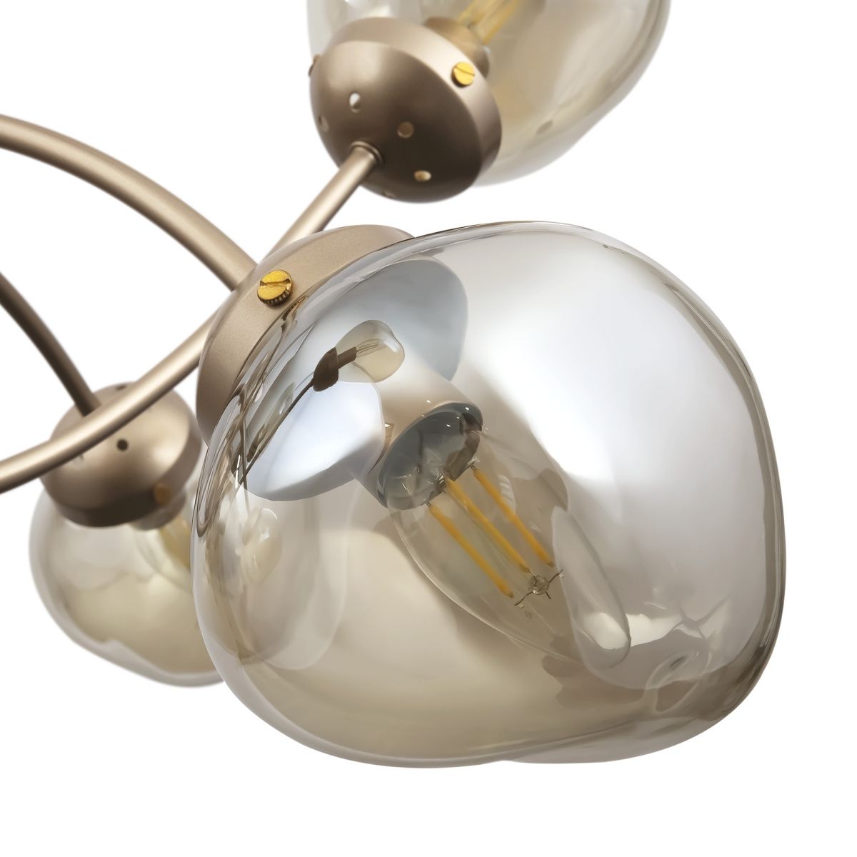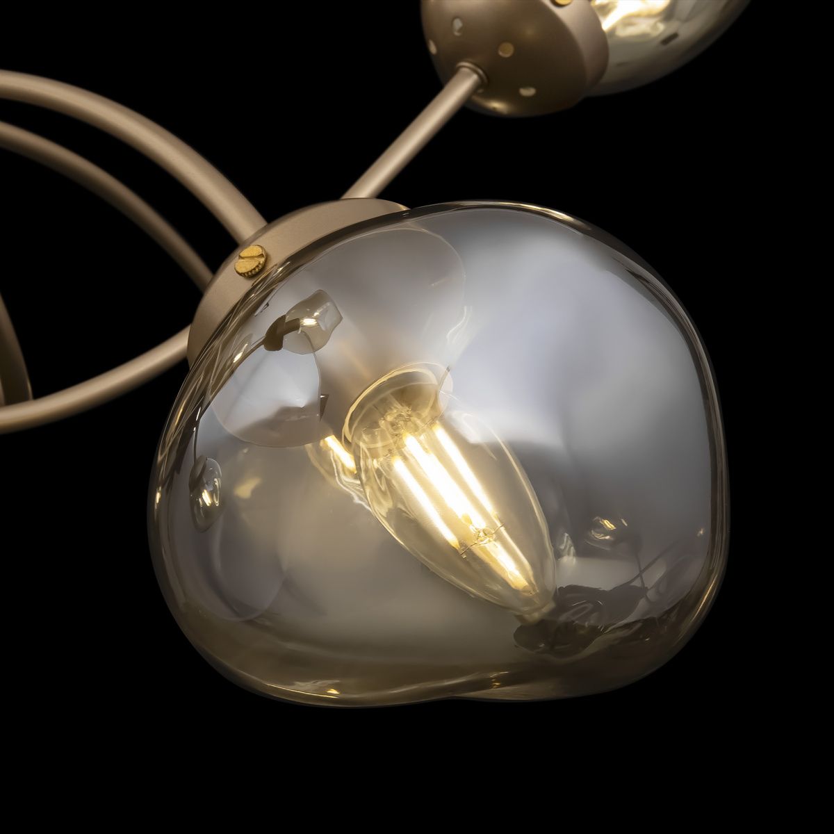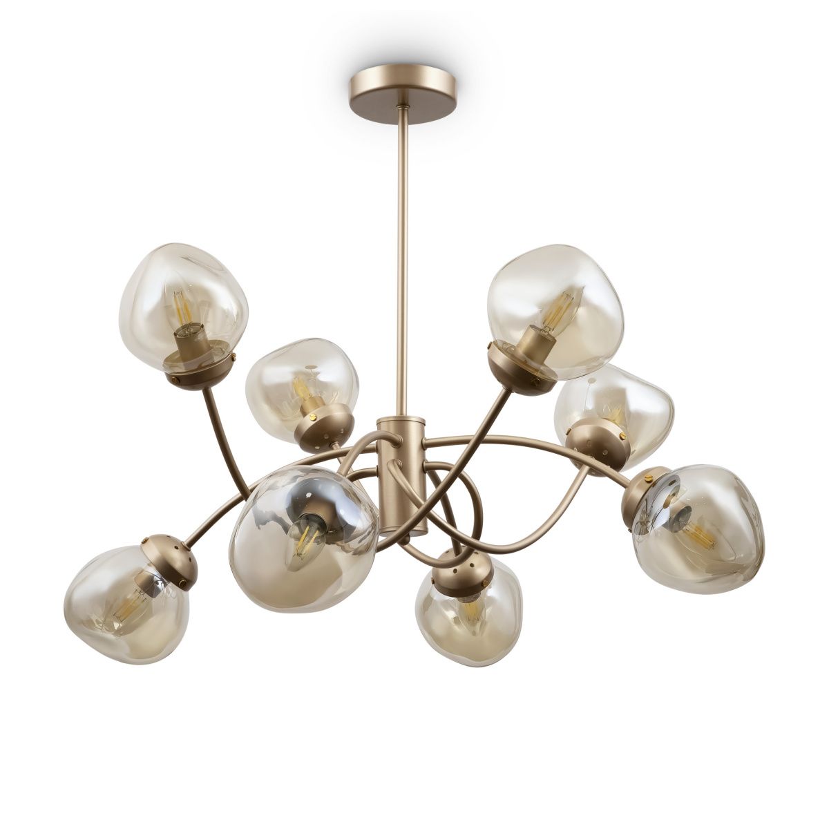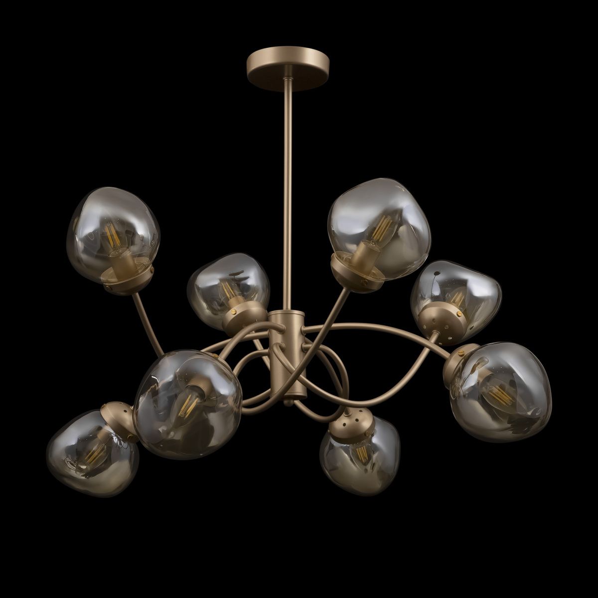 Динамика, скорость и ритм шумного мегаполиса отражены в сложных формах светильников Volani. Такой эффект достигается за счет конструктивных особенностей: рожки изогнуты под необычным углом, переплетаются друг с другом. Дизайнерское решение выгодно и с практической точки зрения: разнонаправленный световой поток обеспечивает равномерное и яркое освещение. Арматура из металла цвета матового золота идеально гармонирует с янтарными стеклянными плафонами. Теплая цветовая гамма добавит интерьеру уюта. Оригинальная форма плафонов поддерживает идею динамичного, движущегося дизайна. Наличие в серии люстр на 6, 8 и 10 ламп позволяет выбрать оптимальную мощность и интенсивность подсветки, исходя из размеров помещения. Завершить и дополнить световую инсталляцию поможет бра. Для интерьеров в стиле лофт, хай-тек, минимализм, mid-century modern серия Volani станет идеальным решением.