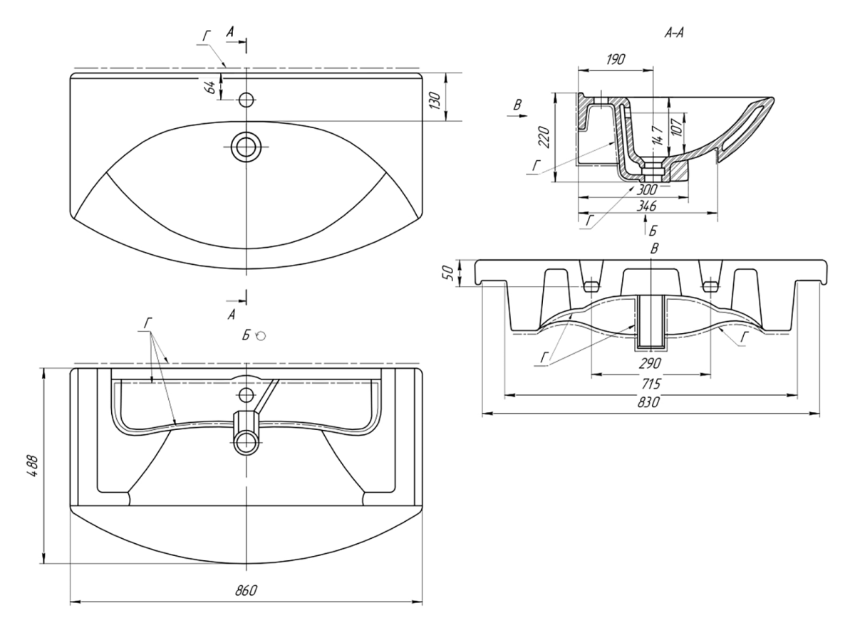 —Раковина мебельная керамическая Dreja Laguna 85 191676 90х50 накладная цвет белый