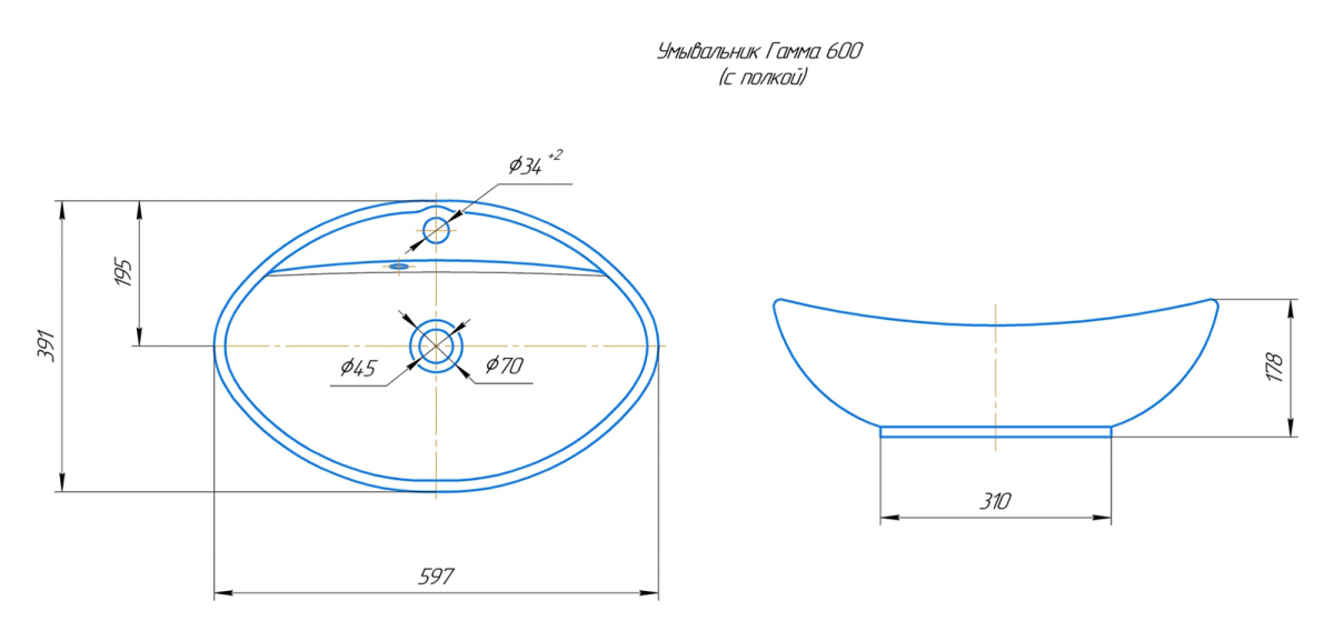 Раковина мебельная керамическая Kirovit Гамма 60 4630055550494 60х40 накладная цвет белый