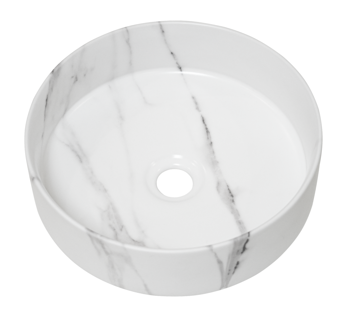—Раковина мебельная из сантехнического фарфора Milleau Nuage MU7044A-MWM 36 (белый мрамор) MU7044A-MWM 40х40 накладная цвет белый без отверстий под смеситель