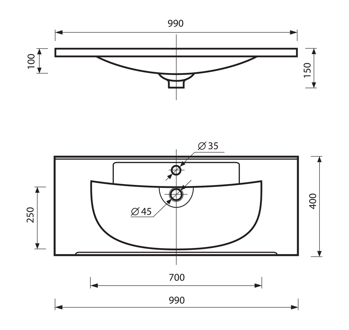 —Раковина мебельная из искусственного камня Misty EVVA 100 Р-Евв14100-Д 100х40 накладная цвет белый