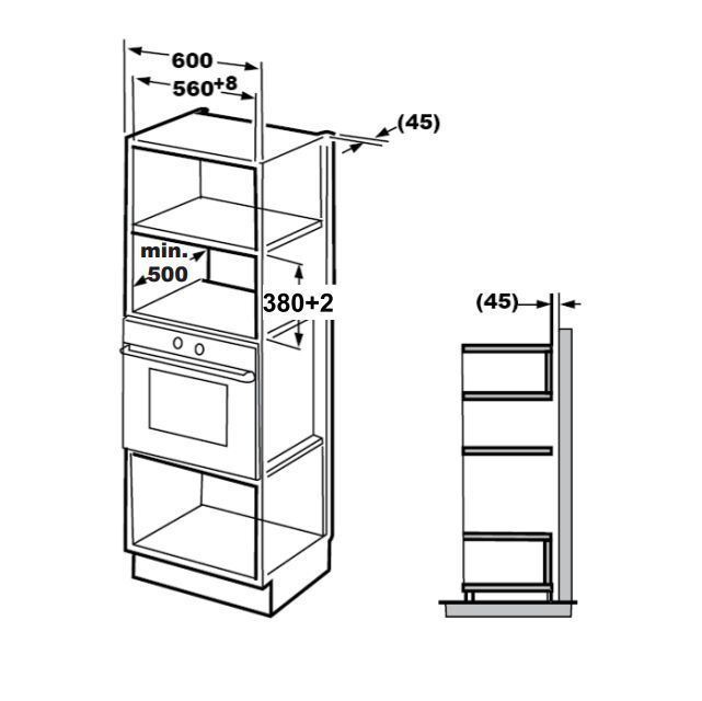 - Размеры ниши для встраивания: 380х560х500 мм