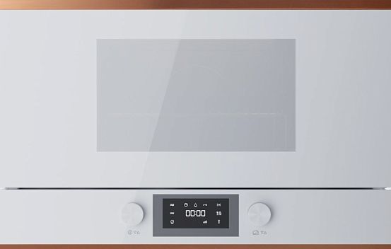 Микроволновая печь Kuppersbusch MR 6330.0 W7 выполнена в цвете белое стекло, управление электронное. Размер прибора 39 х 59.5 х 33.4 см, объем камеры - 22 л., материал камеры нержавеющая сталь и керамическое дно. Дверной упор справа обеспечит эргономичное открывание дверцы.