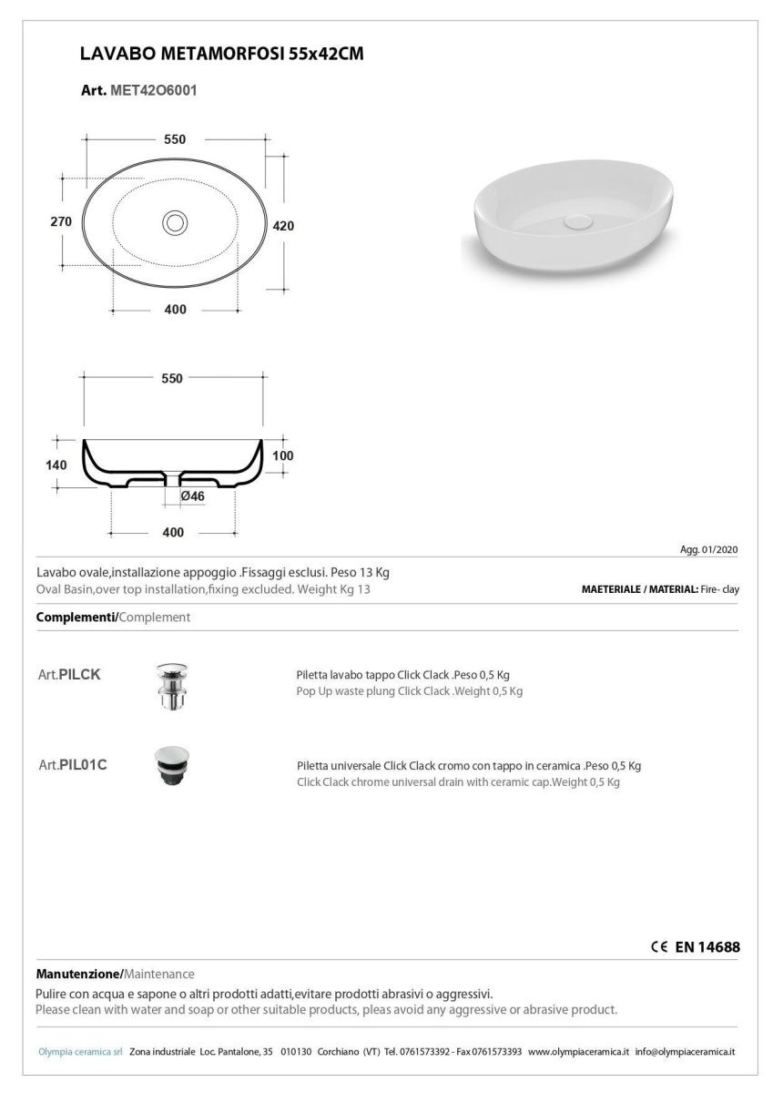 —Раковина керамическая Olympia Metamorfosi MET42O6001 60х40 накладная цвет белый