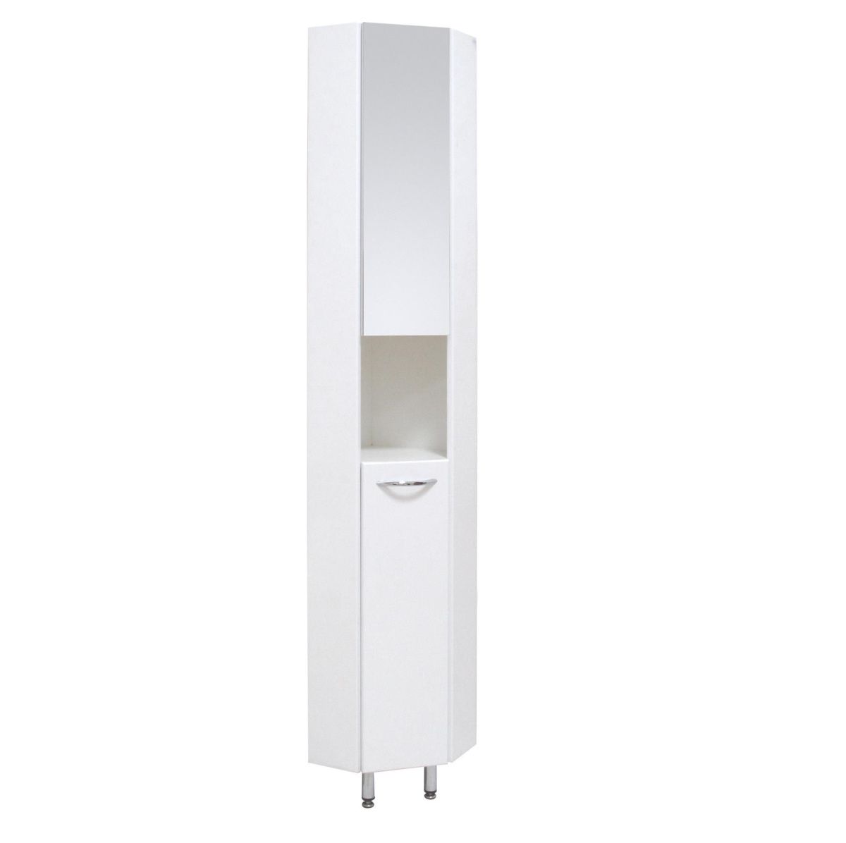 Белая глянцевая поверхность, простая узкая ручка и минималистичный дизайн подойдет к любому интерьеру, а открытая полка посередине и два больших отделения за распашными дверями (верхняя дверь является зеркалом!) - отличное место для хранения необходимых вещей.