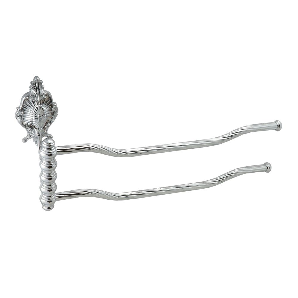 Полотенцедержатель двойной поворотный коллекции ELISABETTA бренда MIGLIORE длиной 45 см очень удобен в использовании — для него достаточно небольшого пространства, и  держатели можно развернуть в одну или другую сторону, в зависимости от наличия места на стене. Розетки аксессуара имеет необычную форму, и удобный крепеж.