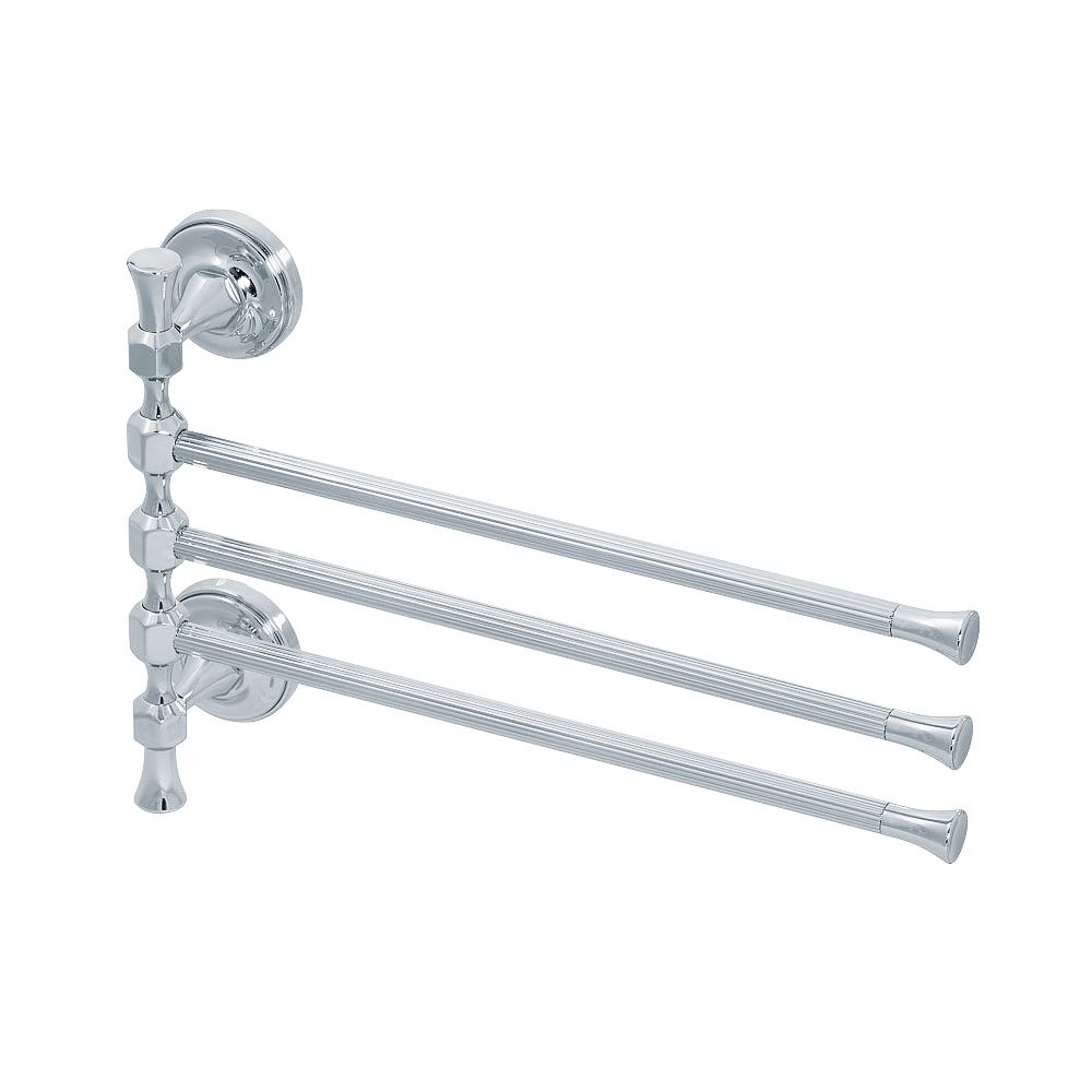 Полотенцедержатель тройной поворотный серии FORTUNA бренда MIGLIORE длиной 32 см очень удобен в использовании. Чтобы повесить его достаточно небольшого пространства, держатели можно развернуть в одну или другую сторону в зависимости от места на стене. Изделие выполнено из латуни и имеет высококачественное хромо-никелиевое покрытие, которое при правильном уходе надолго сохранит  свой блеск. Рекомендуется использовать чистящее средство бренда MIGLIORE для смесителей и аксессуаров с хромированным покрытием.