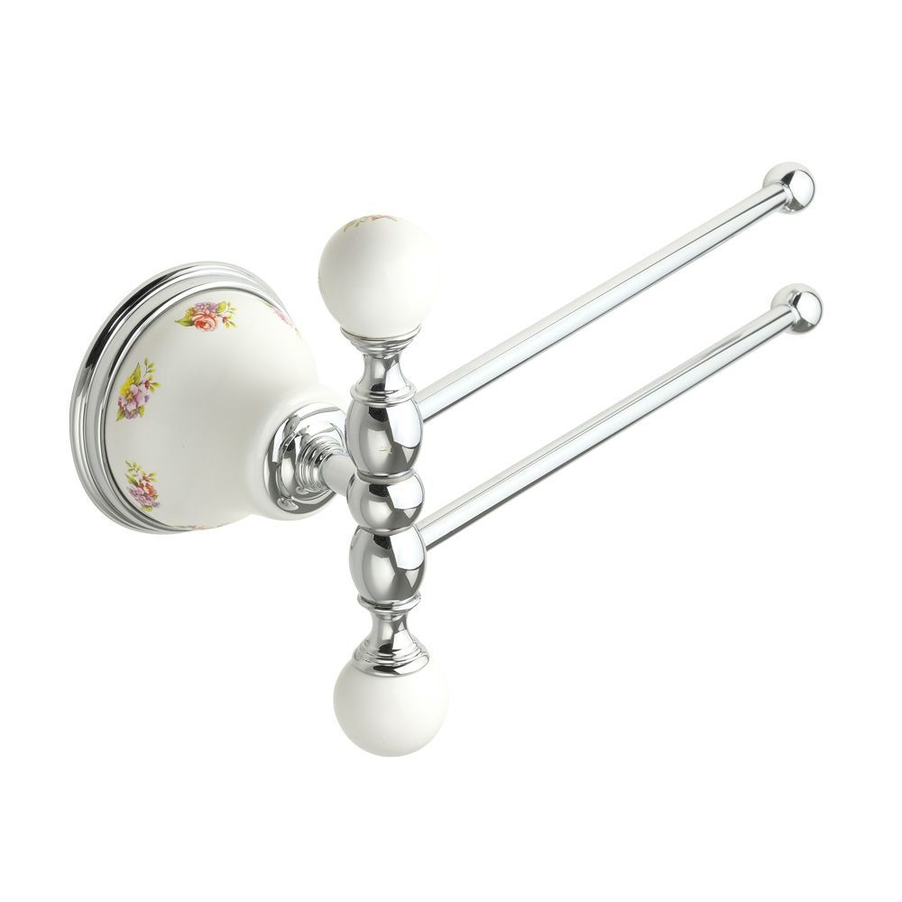 Аксессуары коллекции PROVANCE бренда MIGLIORE имеют нежный цветочный декор на керамике и создают уют в ванной комнате в классическом или рустикальном стиле. Полотенцедержатель двойной поворотный коллекции PROVANCE длиной 20 см очень удобен в использовании — для него достаточно небольшого пространства, и  держатели можно развернуть в одну или другую сторону в зависимости от наличия места на стене.