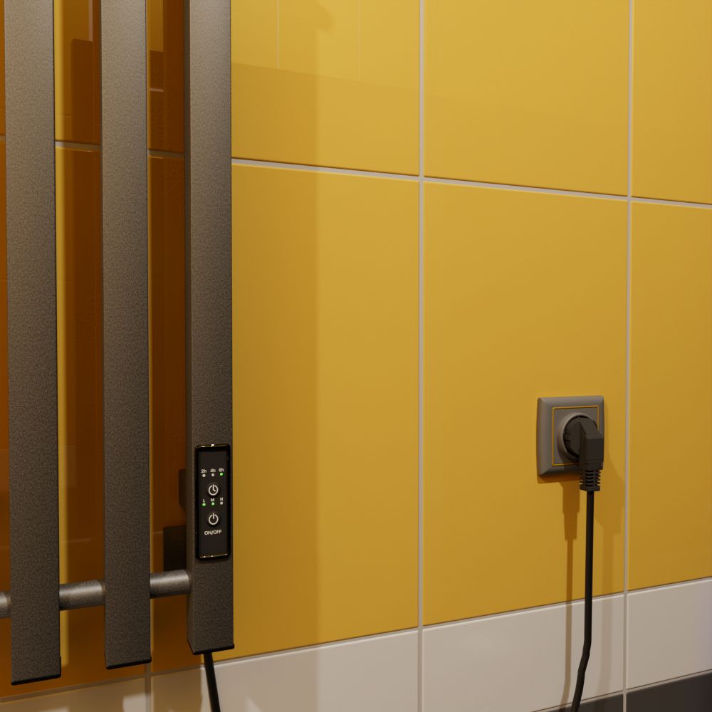 Данный полотенцесушитель имеет два вида подключения: подключение стандартным кабелем с вилкой 220 Вольт и скрытое подключение к заранее подведенной на месте установки проводке. Во втором случае необходимо обжать жилы проводки дополнительными клемниками(идут в комплекте) и подсоединить их к жилам полотенцесушителя, согласно цветовой разметки.