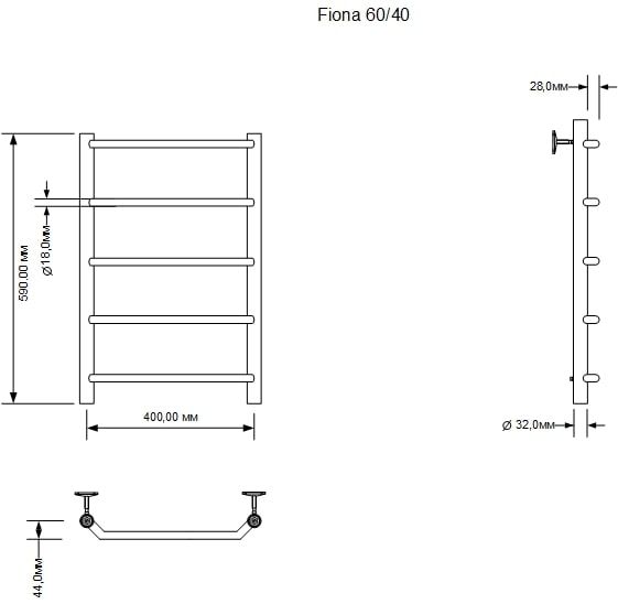 —Полотенцесушитель водяной Aquanet Fiona 00266735 40х60 хром
