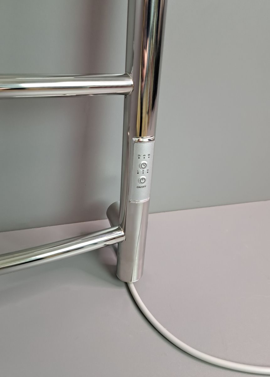 На правой части стойки расположена панель управления. Встроенный терморегулятор позволяет регулировать температуру в диапазоне от 40 до 50 градусов (один шаг – 5 градусов). Уровень температуры определяется по количеству горящих светодиодов.