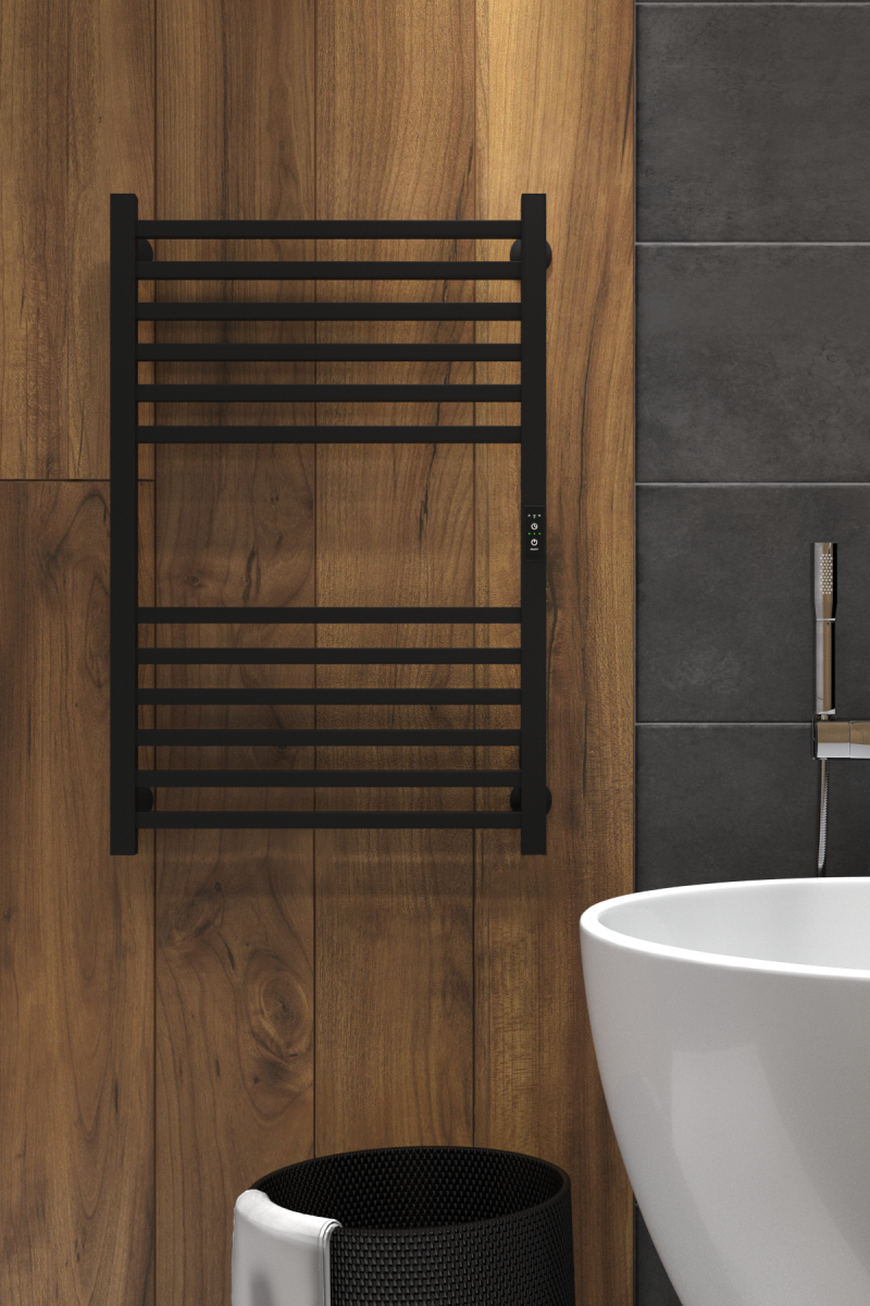 Полотенцесушитель электрический INDIGO Attic в размере 800х500 (ВхШ) выбирают за его технологичность и универсальность. Модель имеет терморегулятор нагрева, у которого три режима: 40, 45, 50 градусов и таймер на отключение через 2, 4, 6 часов. Универсальность изделия предусматривает подключение через провод, который переставляется на нужную вам сторону или скрытое подключение без покупки дополнительного переходника. Длина провода  1,1 метр. Изделие окрашено порошковой краской по специальной технологии. Полотенцесушитель относится к энергоэффективным изделиям, потребляемая мощность в данном размере 90 Вт. Специальная технология нагревательного кабеля защищает полотенцесушитель от перегрева что влияет на длительные сроки службы. В комплектации идут 4 телескопических держателя, комплект монтажа и гарантийный паспорт. Полотенцесушитель INDIGO Attic застрахован и имеет гарантию 3 года.