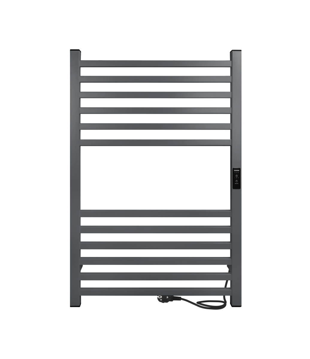 Полотенцесушитель электрический INDIGO Attic в размере 800х500 (ВхШ) выбирают за его технологичность и универсальность. Модель имеет терморегулятор нагрева, у которого три режима: 40, 45, 50 градусов и таймер на отключение через 2, 4, 6 часов. Универсальность изделия предусматривает подключение через провод, который переставляется на нужную вам сторону или скрытое подключение без покупки дополнительного переходника. Длина провода  1,1 метр. Изделие окрашено порошковой краской по специальной технологии. Полотенцесушитель относится к энергоэффективным изделиям, потребляемая мощность в данном размере 90 Вт. Специальная технология нагревательного кабеля защищает полотенцесушитель от перегрева что влияет на длительные сроки службы. В комплектации идут 4 телескопических держателя, комплект монтажа и гарантийный паспорт. Полотенцесушитель INDIGO Attic застрахован и имеет гарантию 3 года.
