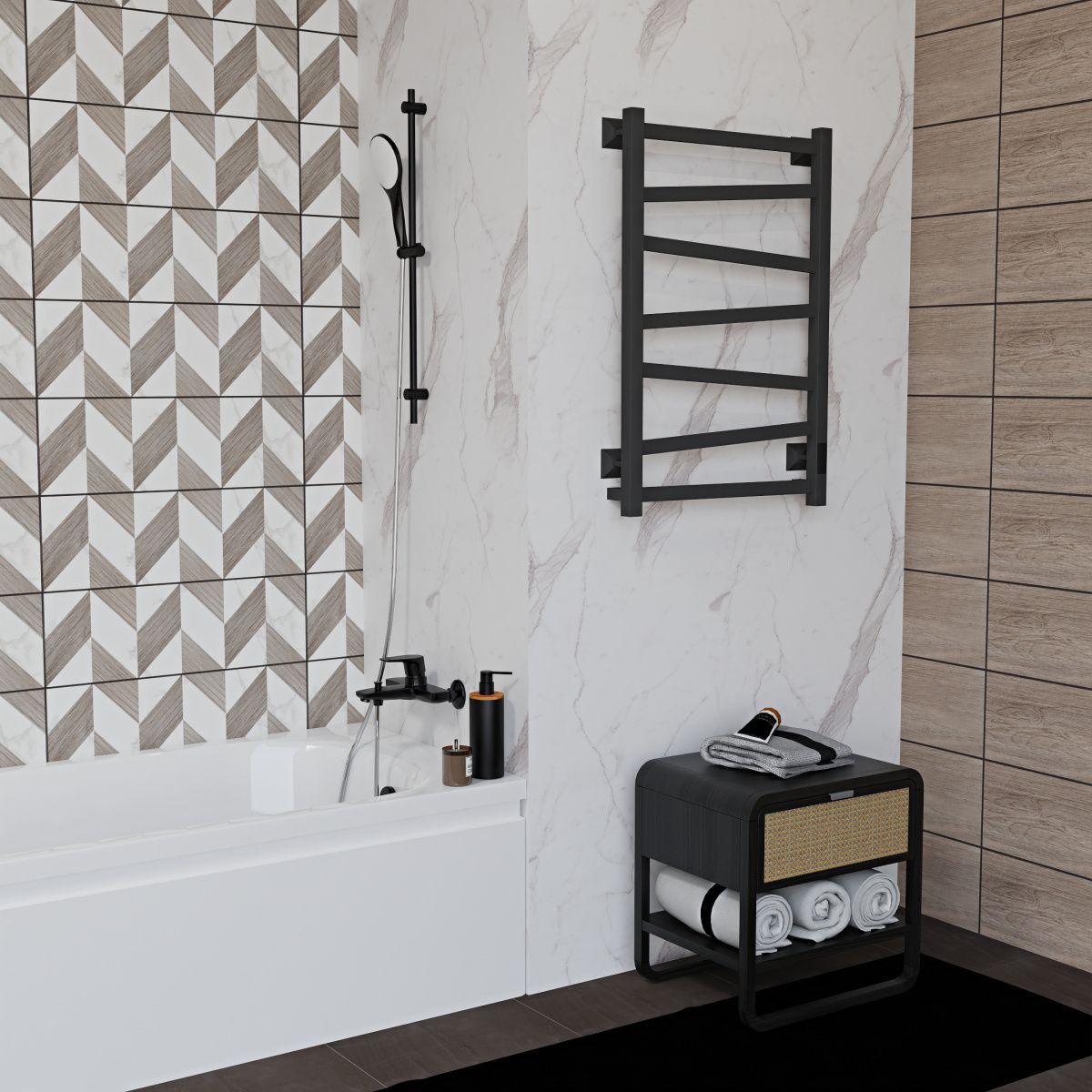 Особенностью данной модели являются перекладины, расположенные под наклоном. Удобны для размещения текстильных вещей на просушивание. С помощью терморегулятора можно регулировать температуру в диапазоне от 40 до 50 градусов (с шагом 5 градусов) — уровень температуры показывается количеством горящих светодиодов. Таймер можно настроить на отключение через 2, 4, 6 часов.