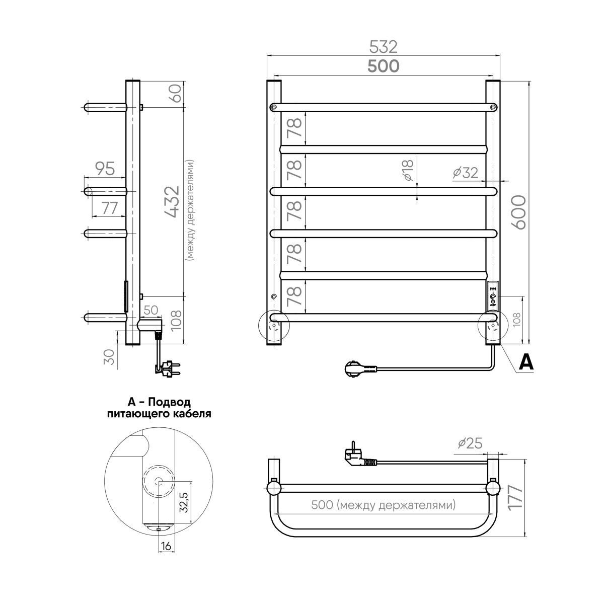 Полотенцесушитель электрический INDIGO Europe Lux в размере 600х500 (ВхШ) выбирают за его технологичность и универсальность. Модель оснащена терморегулятором нагрева, у которого три режима: 40, 45, 50 градусов и таймером на отключение через 2, 4, 6 часов. Универсальность изделия предусматривает подключение через прямой провод, который переставляется на нужную вам сторону или скрытое подключение без покупки дополнительного переходника. Длина провода 1,1 метр. Изделие окрашено порошковой краской по специальной технологии. Полотенцесушитель относится к энергоэффективным изделиям, потребляемая мощность в данном размере 65 Вт. Специальная технология нагревательного кабеля защищает полотенцесушитель от перегрева что влияет на длительные сроки службы. В комплектации идут 4 телескопических держателя, комплект для монтажа и гарантийный паспорт. Полотенцесушитель INDIGO Europe Lux застрахован и имеет гарантию 3 года.