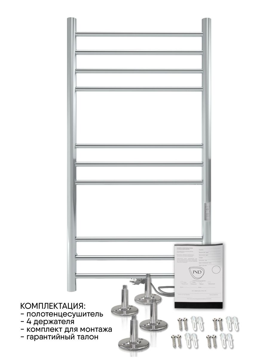 Полотенцесушитель относится к энергоэффективным изделиям, потребляемая мощность в данном размере 140 Вт. Специальная технология нагревательного кабеля защищает полотенцесушитель от перегрева что влияет на длительные сроки службы. В комплектации идут 4 телескопических держателя, комплект для монтажа и гарантийный паспорт.