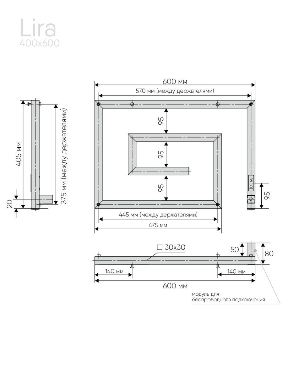 Полотенцесушитель электрический INDIGO Lira в размере 400х600 (ВхШ) выбирают за его технологичность и дизайн-форму. Модель имеет терморегулятор нагрева, у которого три режима: 40, 45, 50 градусов и таймер на отключение через 2, 4, 6 часов. Длина прямого провода 1,1 метр. Изделие окрашено порошковой краской по специальной технологии. Полотенцесушитель относится к энергоэффективным изделиям, потребляемая мощность в данном размере 89 Вт. Специальная технология нагревательного кабеля защищает полотенцесушитель от перегрева, что влияет на длительные сроки службы. В комплектации идут 4 телескопических держателя, комплект монтажа и гарантийный паспорт. Полотенцесушитель INDIGO Lira застрахован и имеет гарантию 3 года.  Выбирая INDIGO вы получаете надежный продукт  с гарантией качества от российского производителя