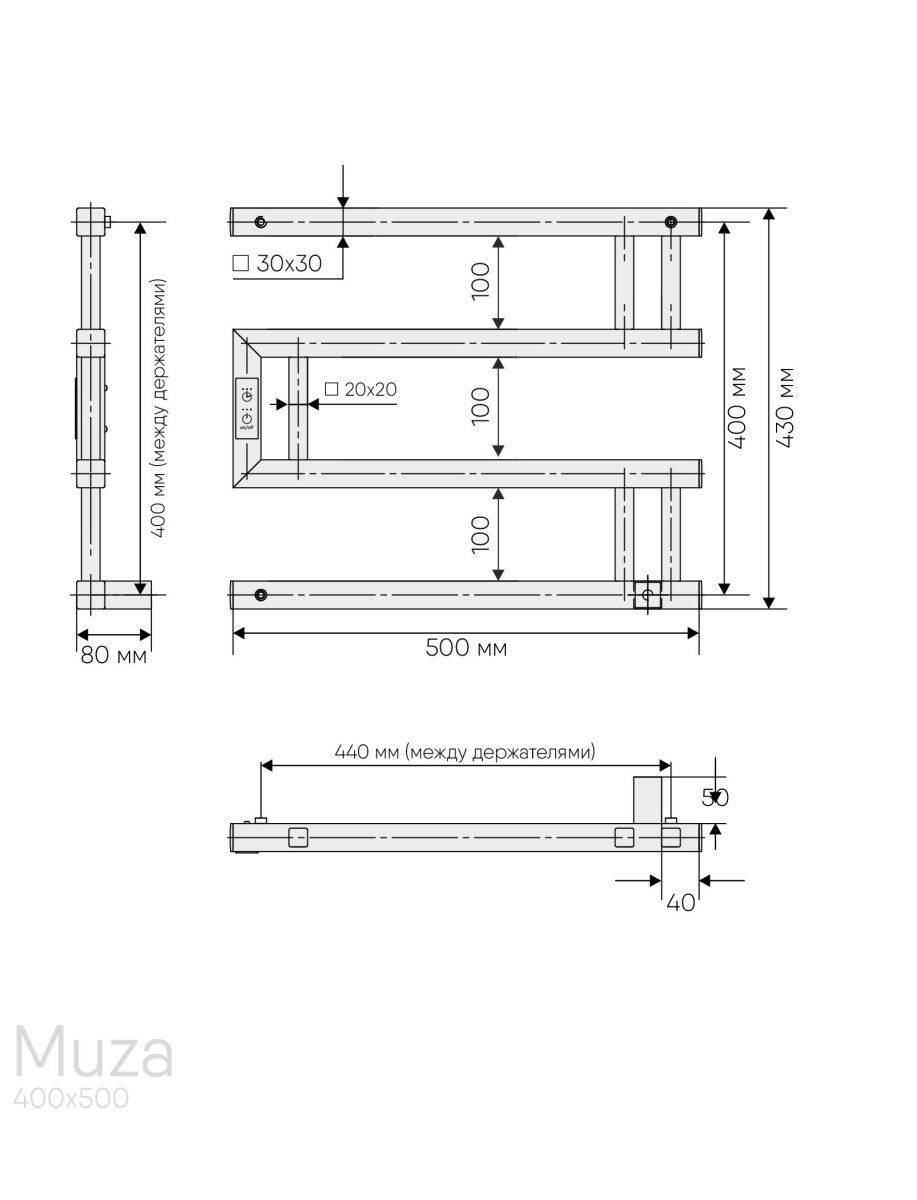 Полотенцесушитель электрический INDIGO Muza в размере 400х500 (ВхШ) выбирают за его технологичность и форму. Модель имеет терморегулятор нагрева, у которого три режима: 40, 45, 50 градусов и таймер на отключение через 2, 4, 6 часов. Подключение осуществляется двумя способами: скрытое подключение к электропроводке через модуль скрытого подключения в стену или прямым электропроводом. Длина прямого провода 1,1 метр. Изделие окрашено порошковой краской по специальной технологии. Полотенцесушитель относится к энергоэффективным изделиям, потребляемая мощность в данном размере 64 Вт. Специальная технология нагревательного кабеля защищает полотенцесушитель от перегрева, что влияет на длительные сроки службы. В комплектации идут 3 телескопических держателя, комплект монтажа и гарантийный паспорт. Полотенцесушитель INDIGO Muza застрахован и имеет гарантию 3 года.