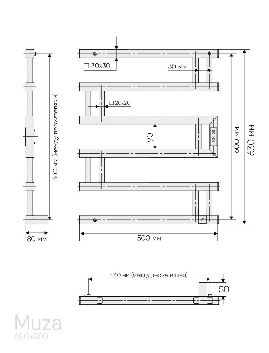 Полотенцесушитель электрический INDIGO Muza в размере 600х500 (ВхШ) выбирают за его технологичность и форму. Модель имеет терморегулятор нагрева, у которого три режима: 40, 45, 50 градусов и таймер на отключение через 2, 4, 6 часов.  Подключение осуществляется двумя способами: скрытое подключение к электропроводке через модуль скрытого подключения в стену или прямым электропроводом. Длина прямого провода 1,1 метр. Изделие окрашено порошковой краской по специальной технологии. Полотенцесушитель относится к энергоэффективным изделиям, потребляемая мощность в данном размере 128 Вт. Специальная технология нагревательного кабеля защищает полотенцесушитель от перегрева, что влияет на длительные сроки службы. В комплектации идут 3 телескопических держателя, комплект монтажа и гарантийный паспорт. Полотенцесушитель INDIGO Muza застрахован и имеет гарантию 3 года.