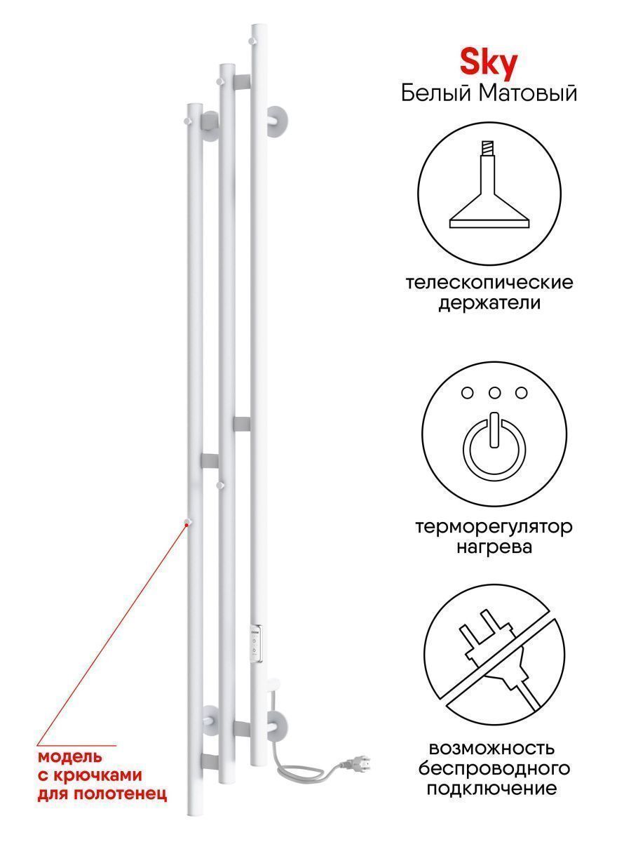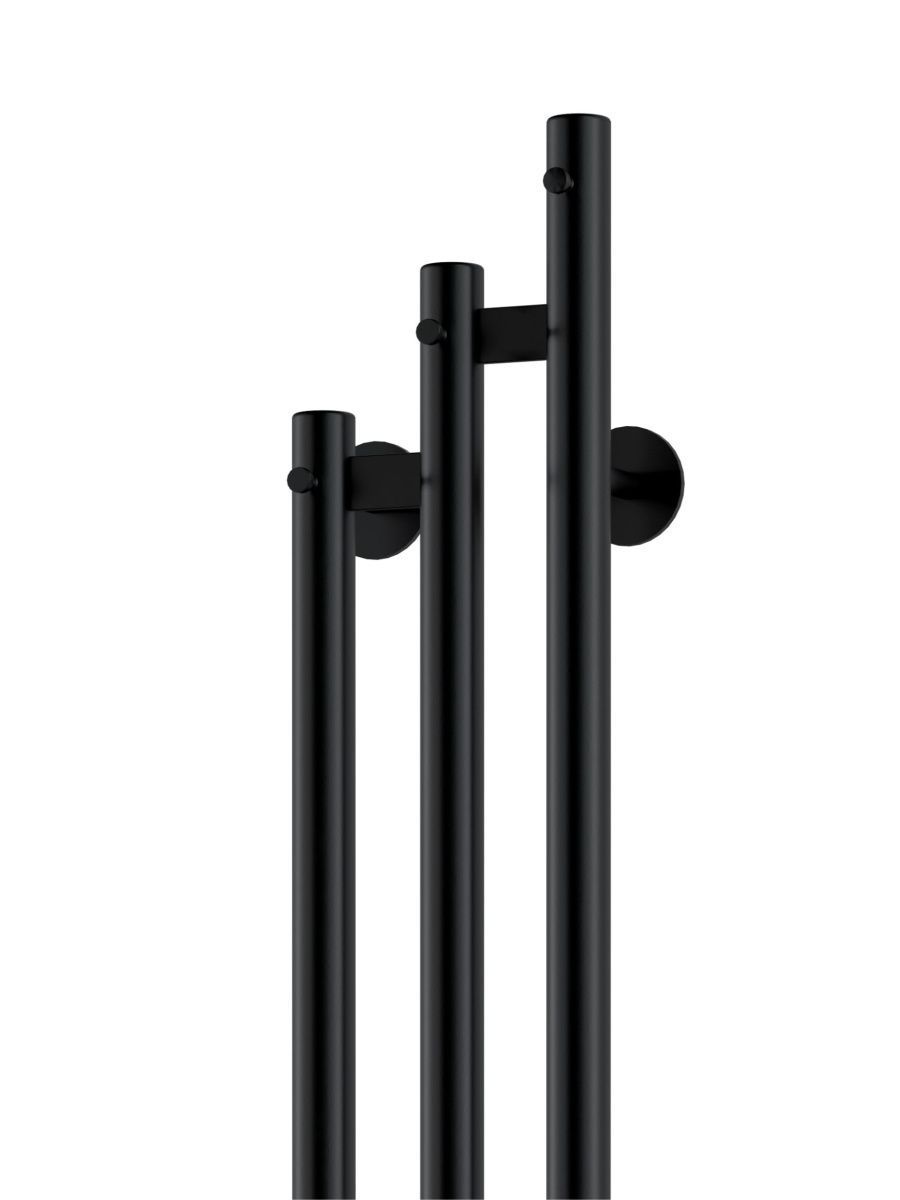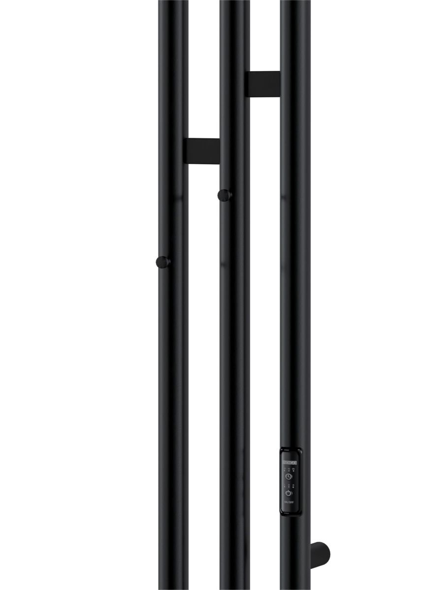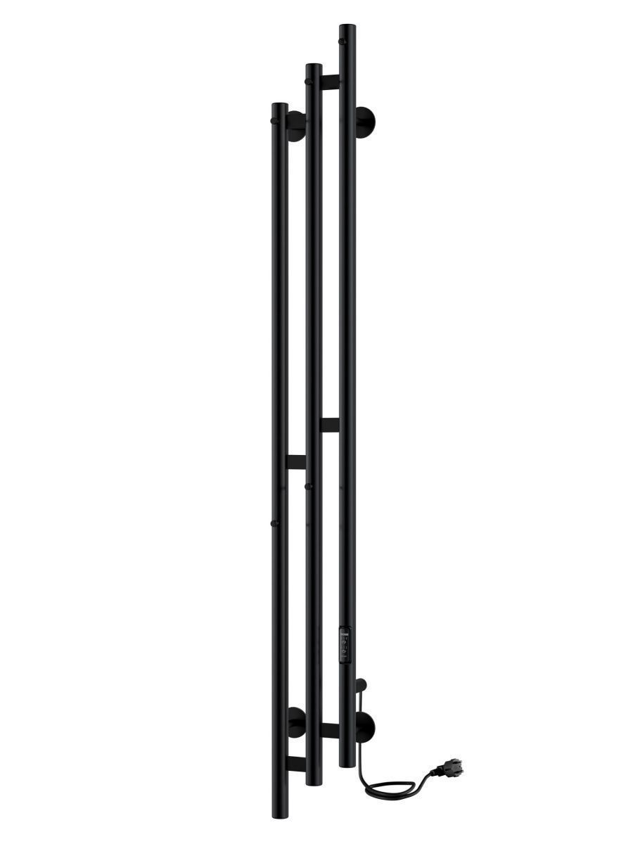 Матовое покрытие с легкой песочной текстурой исключает следы от отпечатков пальцев, а черный цвет создаёт эффектный контраст и идеально сочетается с остальной сантехникой темных оттенков. Крючки на полотенцесушителе предусмотрены для дополнительного размещения текстильных изделий.