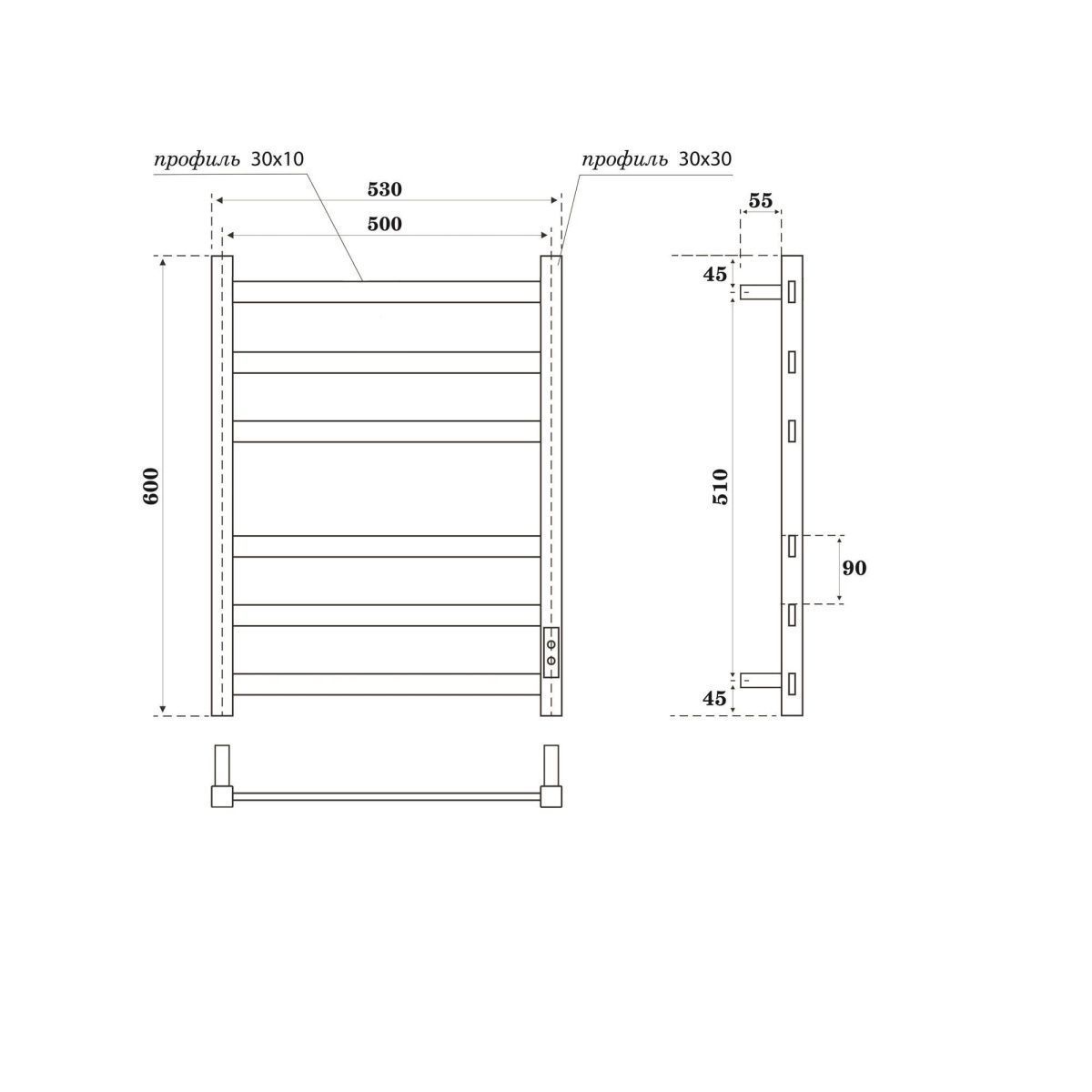 —Полотенцесушитель Point Меркурий PN83856GR электрический графит