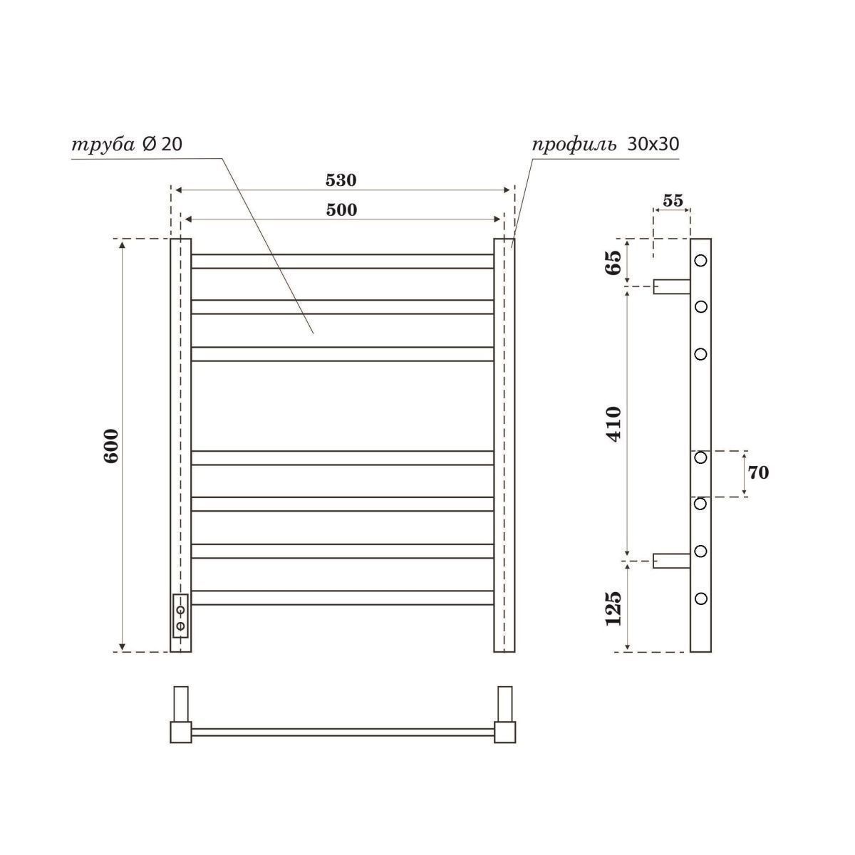 —Полотенцесушитель Point Веста PN70756GR 53х60 электрический графит