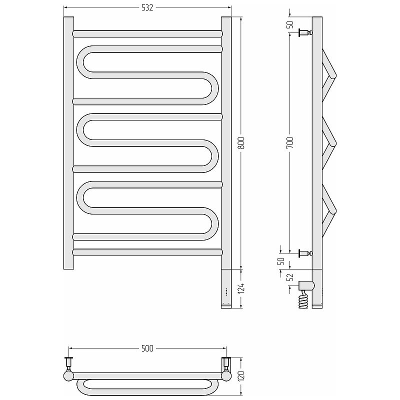 —Полотенцесушитель электрический Сунержа Элегия 3.0 00-5819-8050 50х80 хром