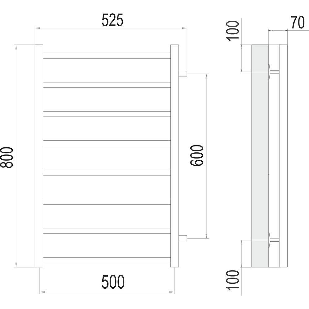 Полотенцесушитель водяной арт.: 4670078530011. Бренд: Terminus. Тип подключения: боковое(слева, справа). Материал: нержавеющая сталь. Теплоноситель: вода. Форма: лесенка.