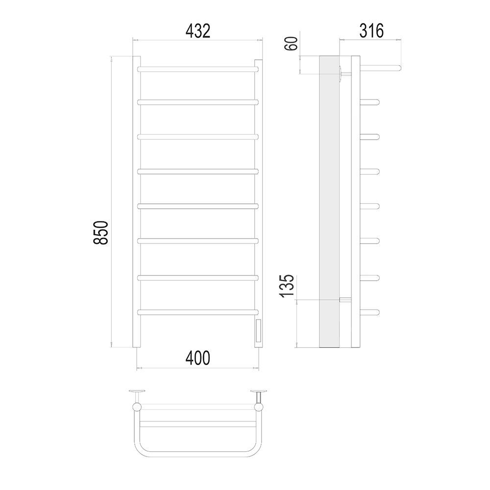 —Полотенцесушитель электрический Terminus 4670078531445 45х85 хром