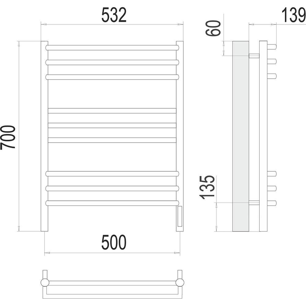 Полотенцесушитель электрический Terminus 4670078531506 55х70 хром