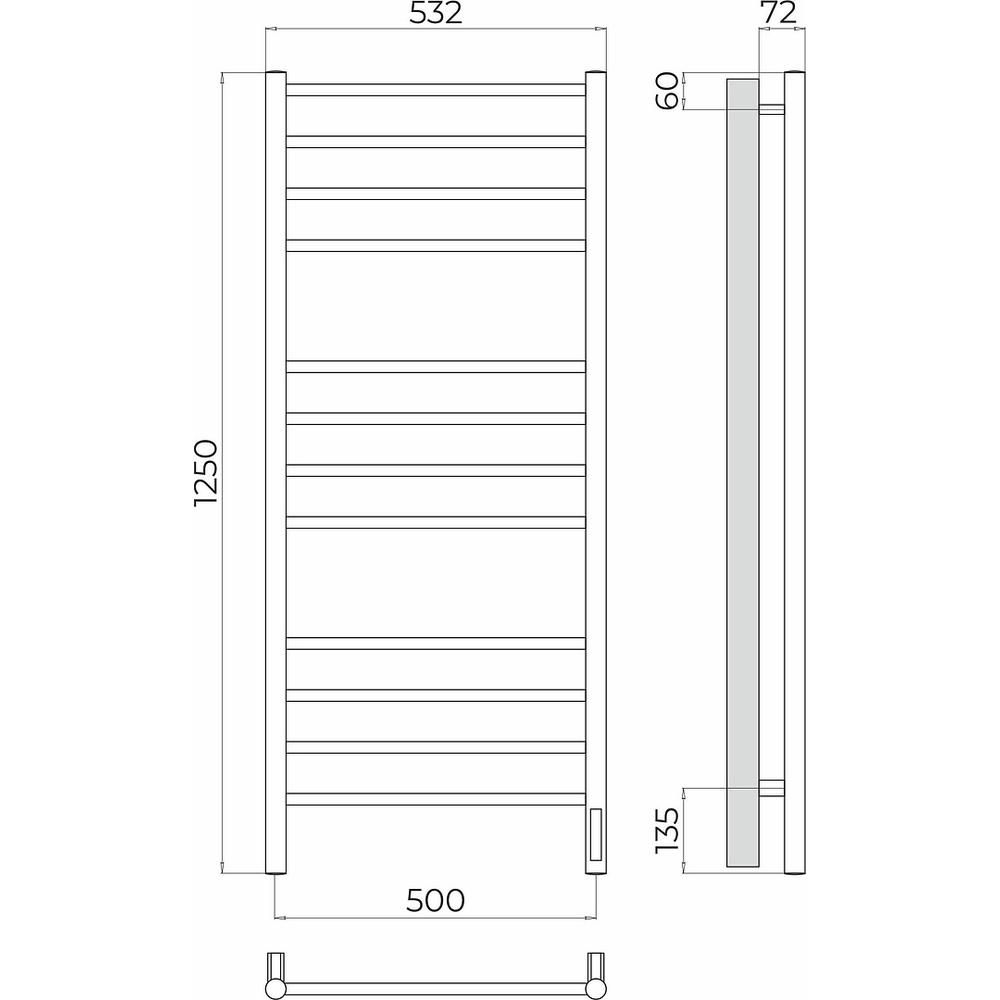Полотенцесушитель электрический арт.: 4670078544377. Бренд: Terminus. Тип подключения: справа. Материал: нержавеющая сталь. Теплоноситель: греющий кабель. Форма: лесенка. 3 режима работы таймера.