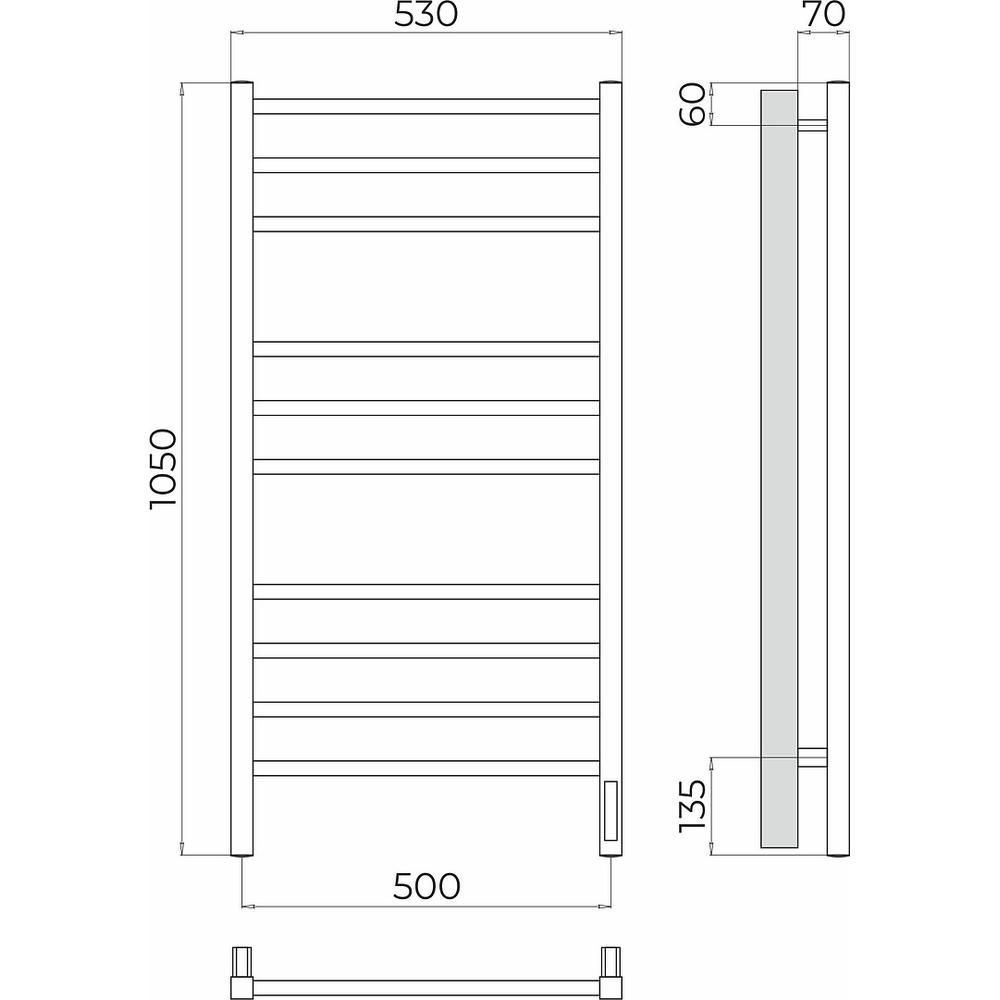 Полотенцесушитель электрический арт.: 4670078544407. Бренд: Terminus. Тип подключения: справа. Материал: нержавеющая сталь. Теплоноситель: греющий кабель. Форма: лесенка. 3 режима работы таймера.