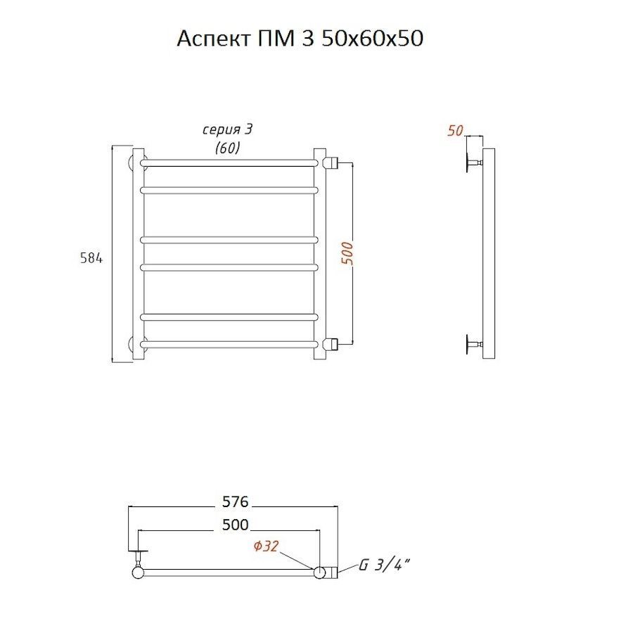 —Полотенцесушитель водяной Тругор Аспект Аспект3/ПМ506050 55х60 хром