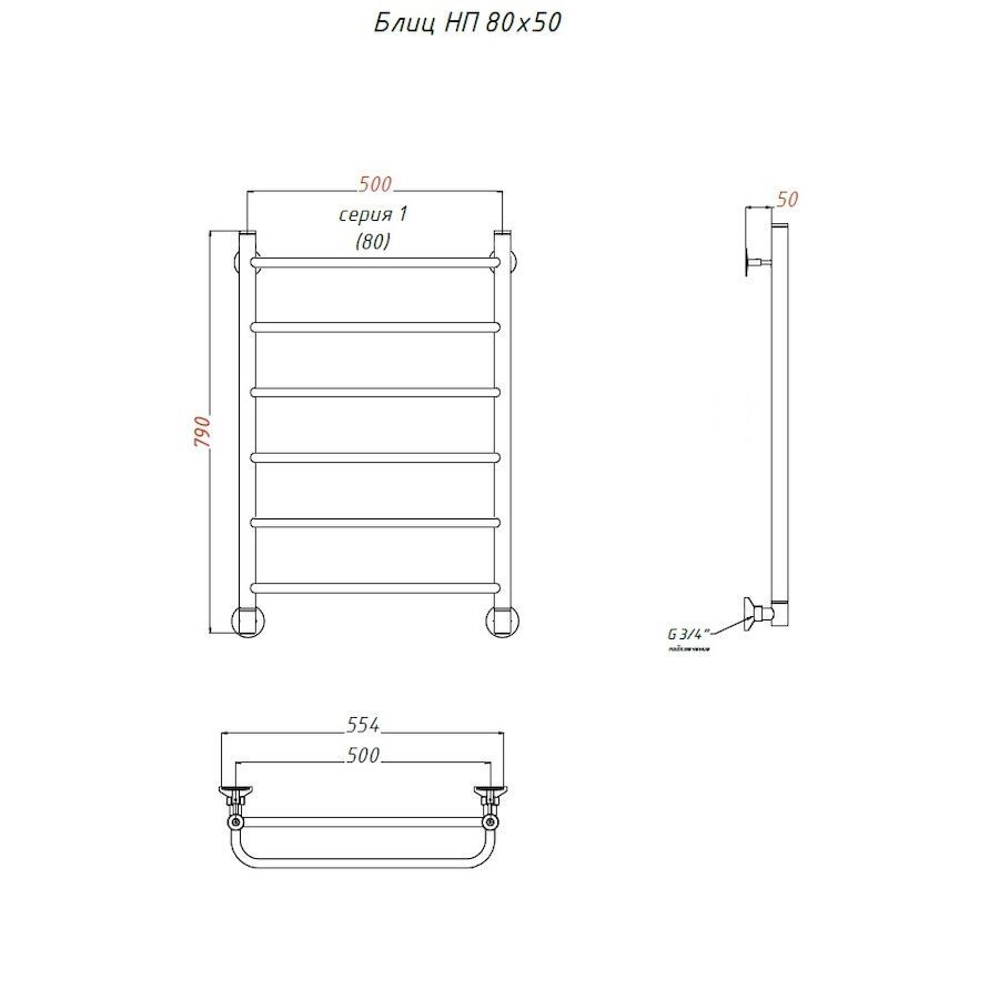 —Полотенцесушитель водяной Тругор Блиц Блиц/нп8050 55х80 хром