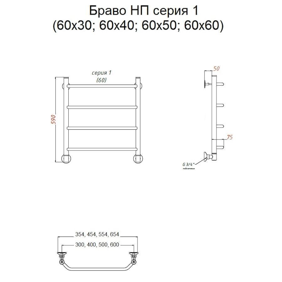 —Полотенцесушитель водяной Тругор Браво Браво1/нп6040 45х60 хром