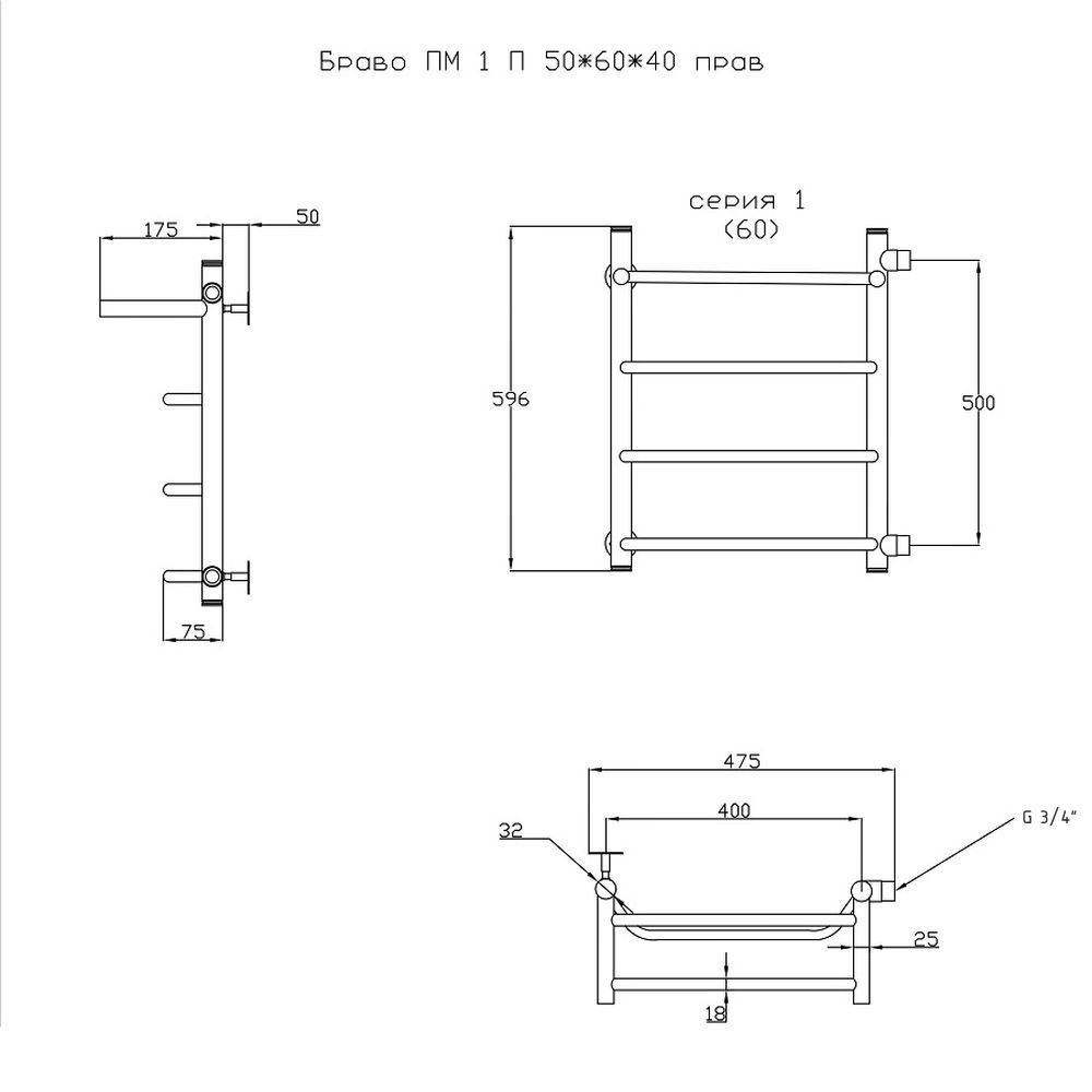 —Полотенцесушитель водяной Тругор Браво Браво1/ПМ506040Пправ 45х60 хром