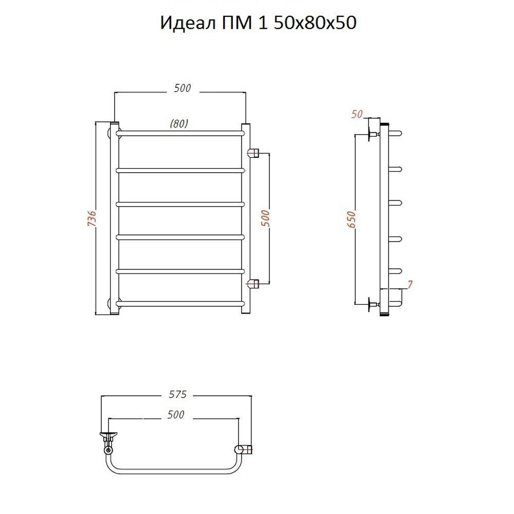 —Полотенцесушитель водяной Тругор Идеал Идеал1/ПМ508050 55х80 хром