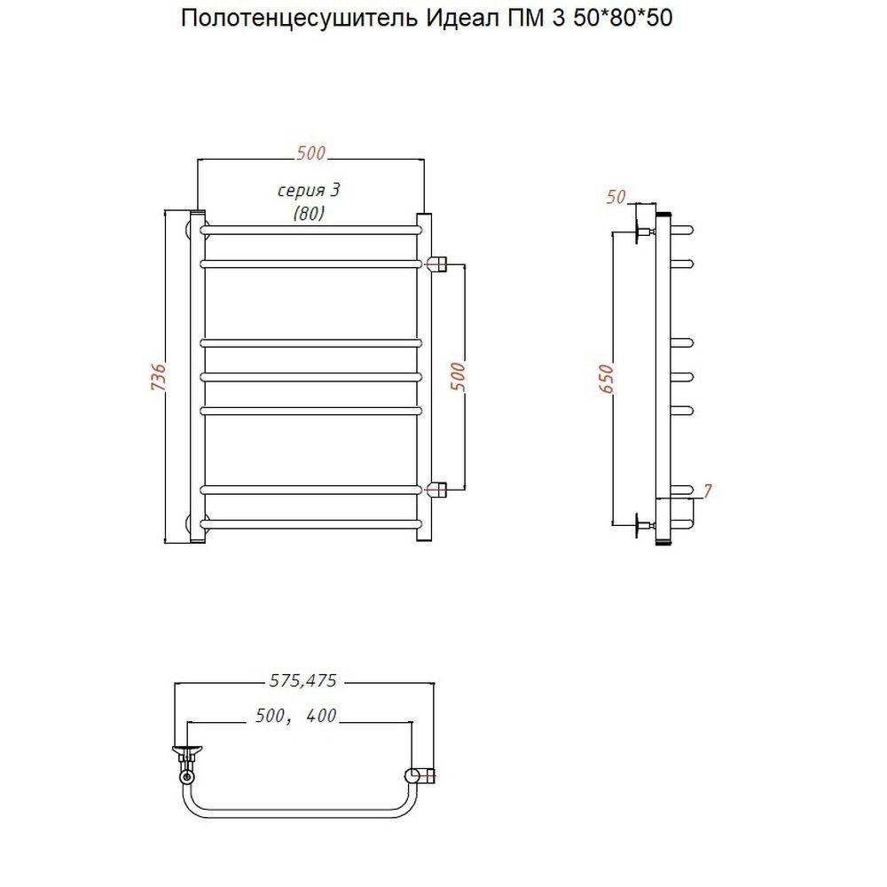 —Полотенцесушитель водяной Тругор Идеал Идеал3/ПМ508050 55х80 хром